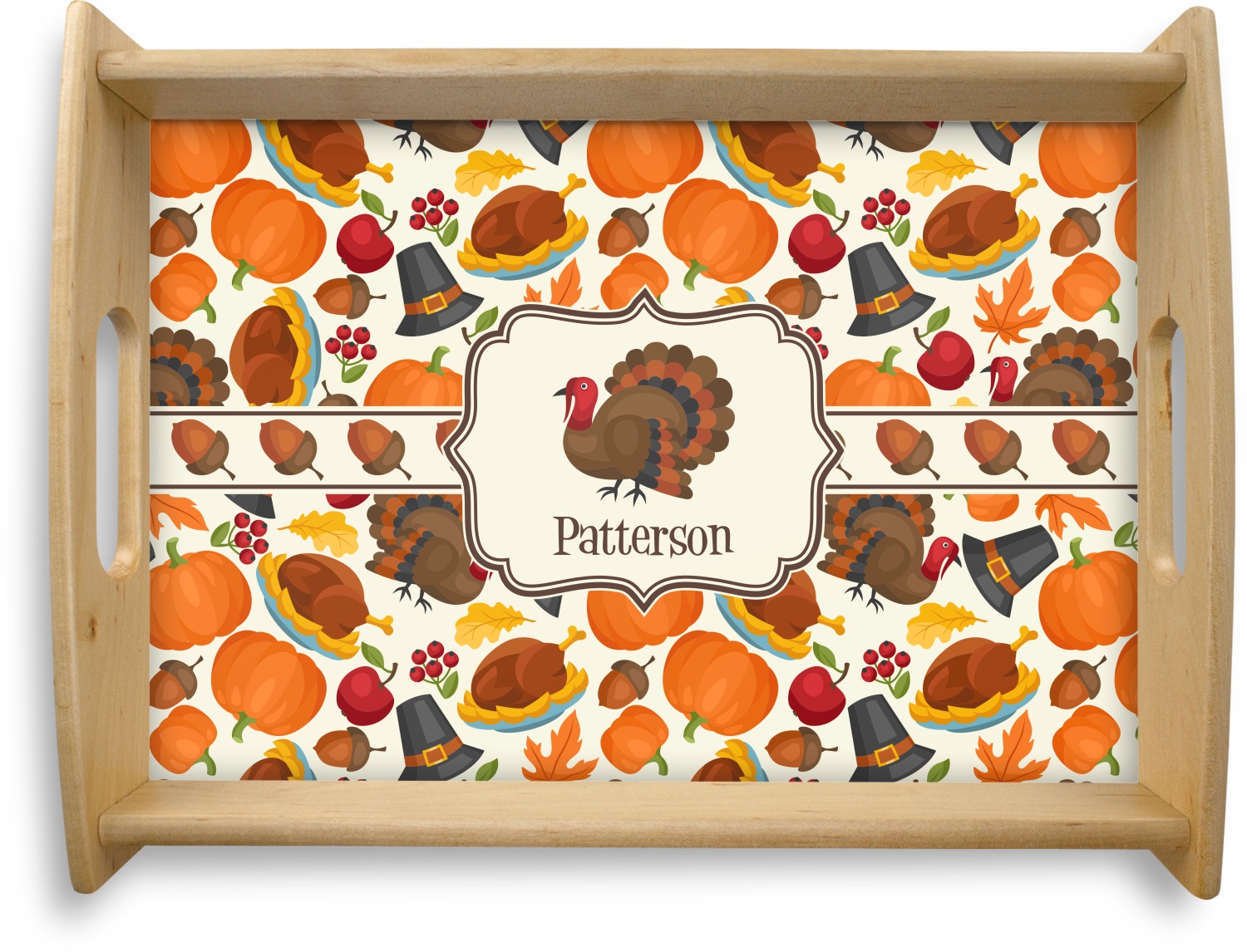 We chose a ribbon with acorns and a decorative label with a turkey graphic and name personalization.