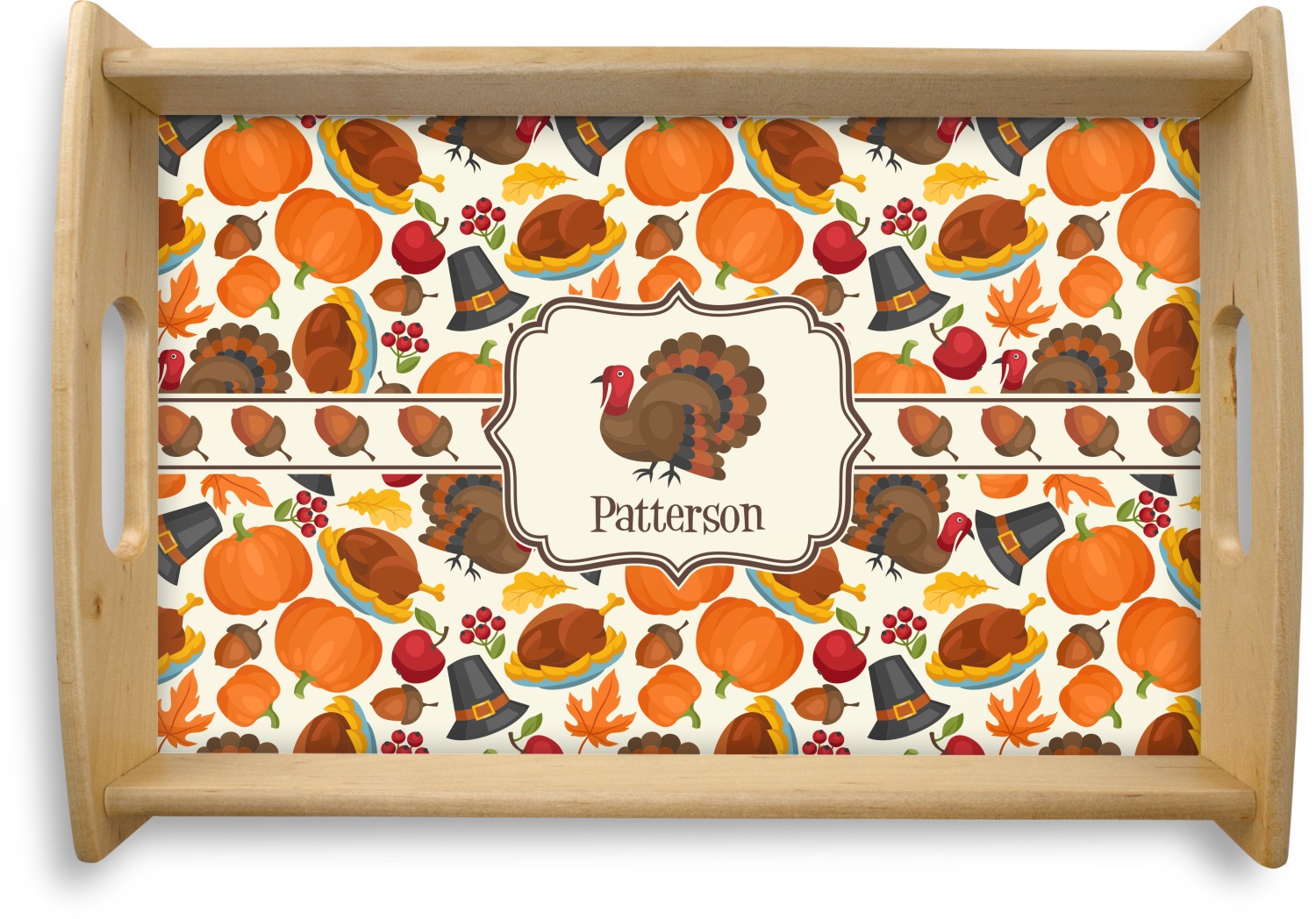 We chose a ribbon with acorns and a decorative label with a turkey graphic and name personalization.