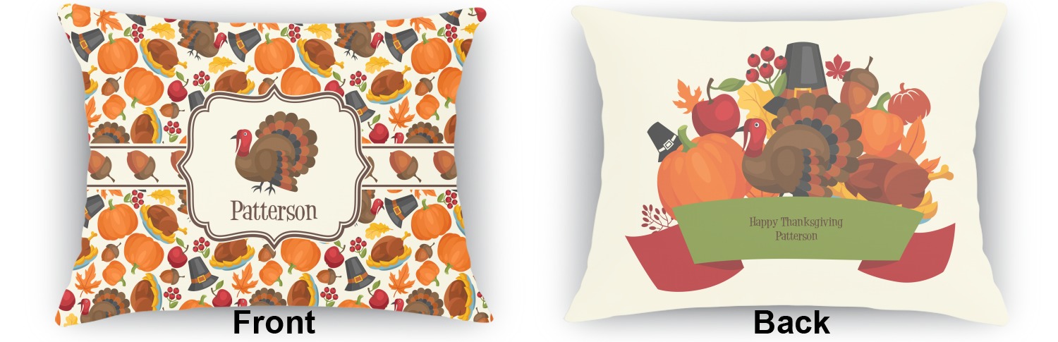 This traditional thanksgiving design is perfect for celebrating the season of giving thanks. This classic design includes turkey, pumpkin, pilgirm hat, berries, apples, acorns and leaves. The background on this design is re-color-able; and we chose the light yellow from the fall / thanksgiving color palette in our customization system.