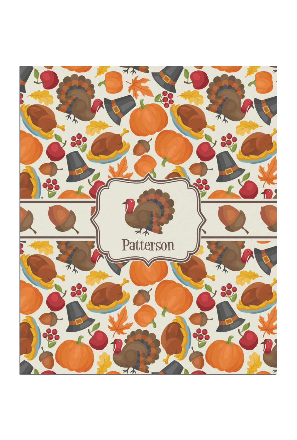 This traditional thanksgiving design is perfect for celebrating the season of giving thanks. This classic design includes turkey, pumpkin, pilgirm hat, berries, apples, acorns and leaves. The background on this design is re-color-able; and we chose the light yellow from the fall / thanksgiving color palette in our customization system.