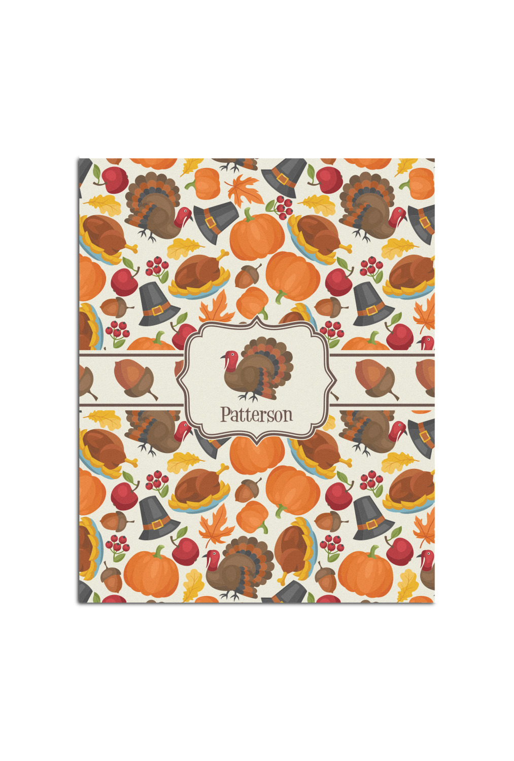 This traditional thanksgiving design is perfect for celebrating the season of giving thanks. This classic design includes turkey, pumpkin, pilgirm hat, berries, apples, acorns and leaves. The background on this design is re-color-able; and we chose the light yellow from the fall / thanksgiving color palette in our customization system.