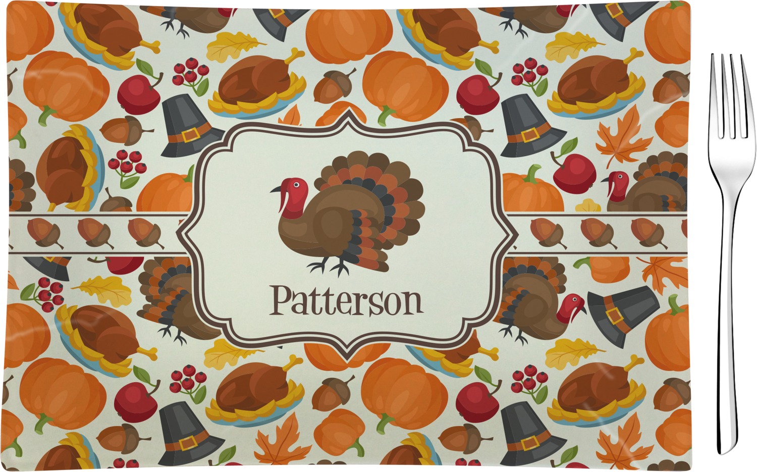 This traditional thanksgiving design is perfect for celebrating the season of giving thanks. This classic design includes turkey, pumpkin, pilgirm hat, berries, apples, acorns and leaves. The background on this design is re-color-able; and we chose the light yellow from the fall / thanksgiving color palette in our customization system.