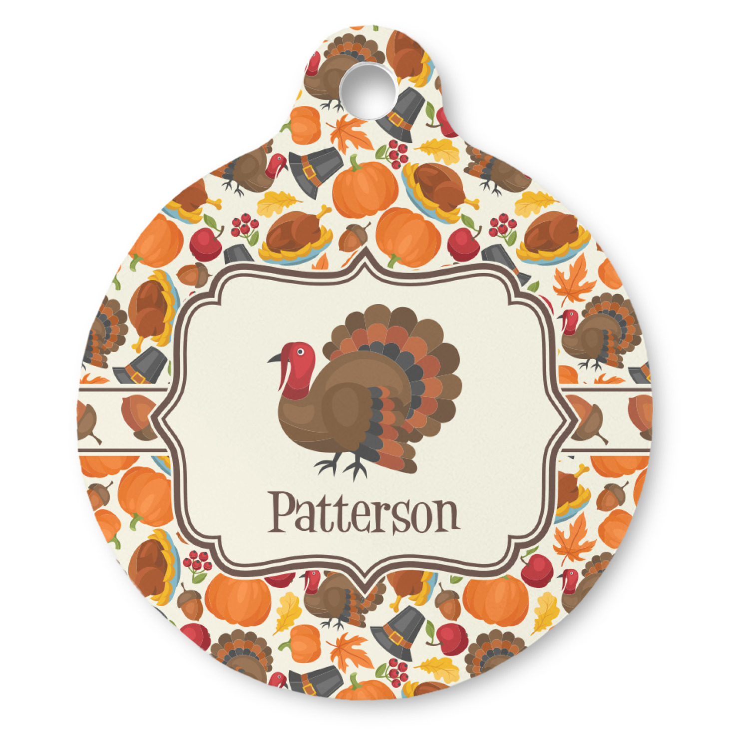 This traditional thanksgiving design is perfect for celebrating the season of giving thanks. This classic design includes turkey, pumpkin, pilgirm hat, berries, apples, acorns and leaves. The background on this design is re-color-able; and we chose the light yellow from the fall / thanksgiving color palette in our customization system.