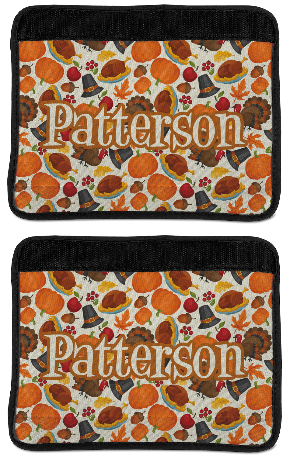 Made from neoprene, our seat belt strap covers wrap around the belt itself and have a Velcro tab for easy attachment and closure. The belt's edges are trimmed with a black polyester for a secure finish. Each cover is 9.5 by 7 inches when open and 9.5 by 2.5 inches when closed. We print your personalized design on the face of the seat belt pad.