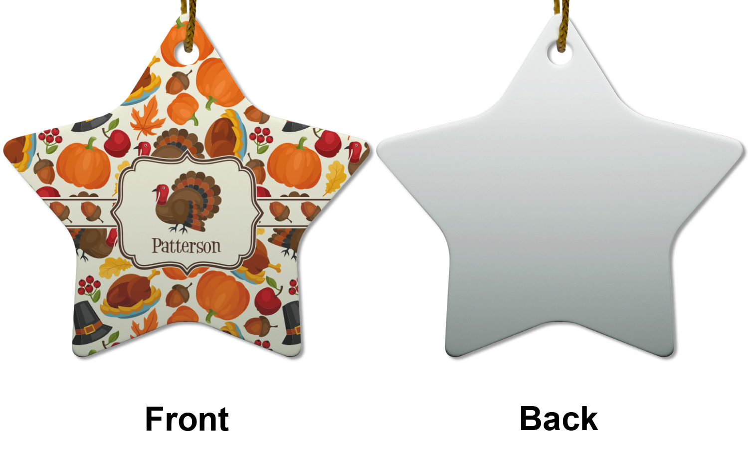 We chose a ribbon with acorns and a decorative label with a turkey graphic and name personalization.