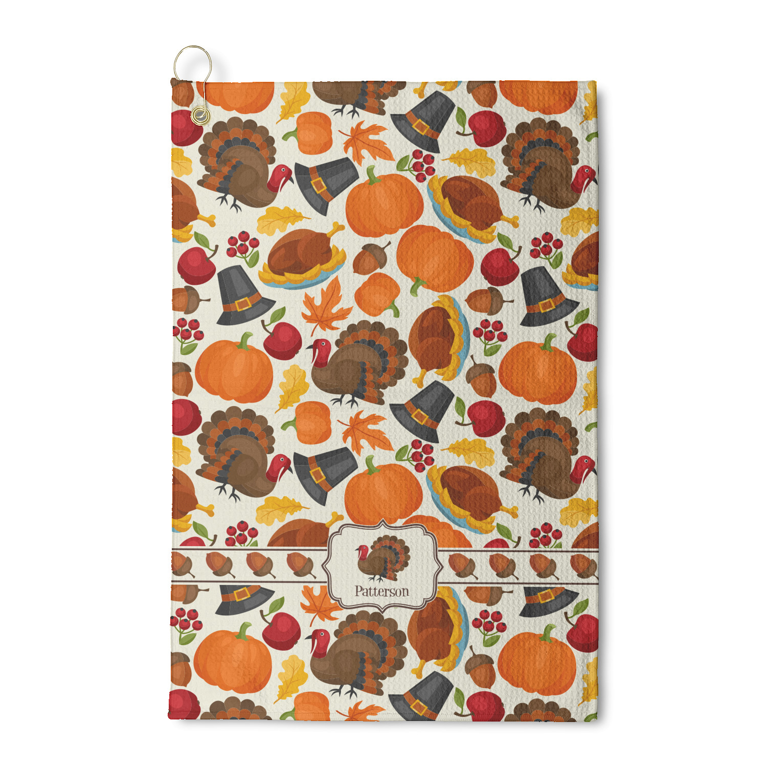This traditional thanksgiving design is perfect for celebrating the season of giving thanks. This classic design includes turkey, pumpkin, pilgirm hat, berries, apples, acorns and leaves. The background on this design is re-color-able; and we chose the light yellow from the fall / thanksgiving color palette in our customization system.
