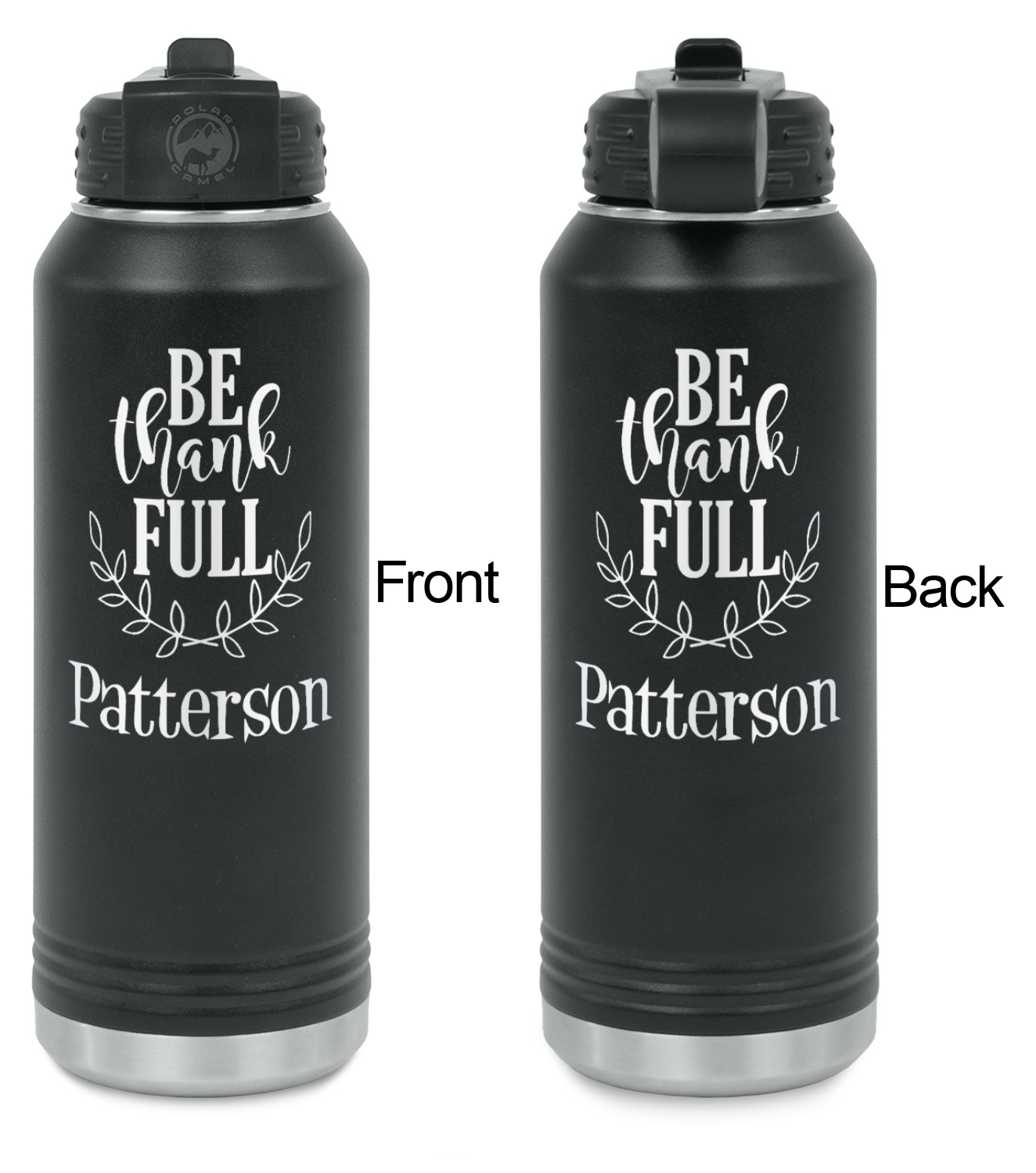 Our laser engraved stainless steel water bottles are designed for on the go lifestyle. These water bottles are perfect for the gym, the office, traveling, camping, hiking etc.