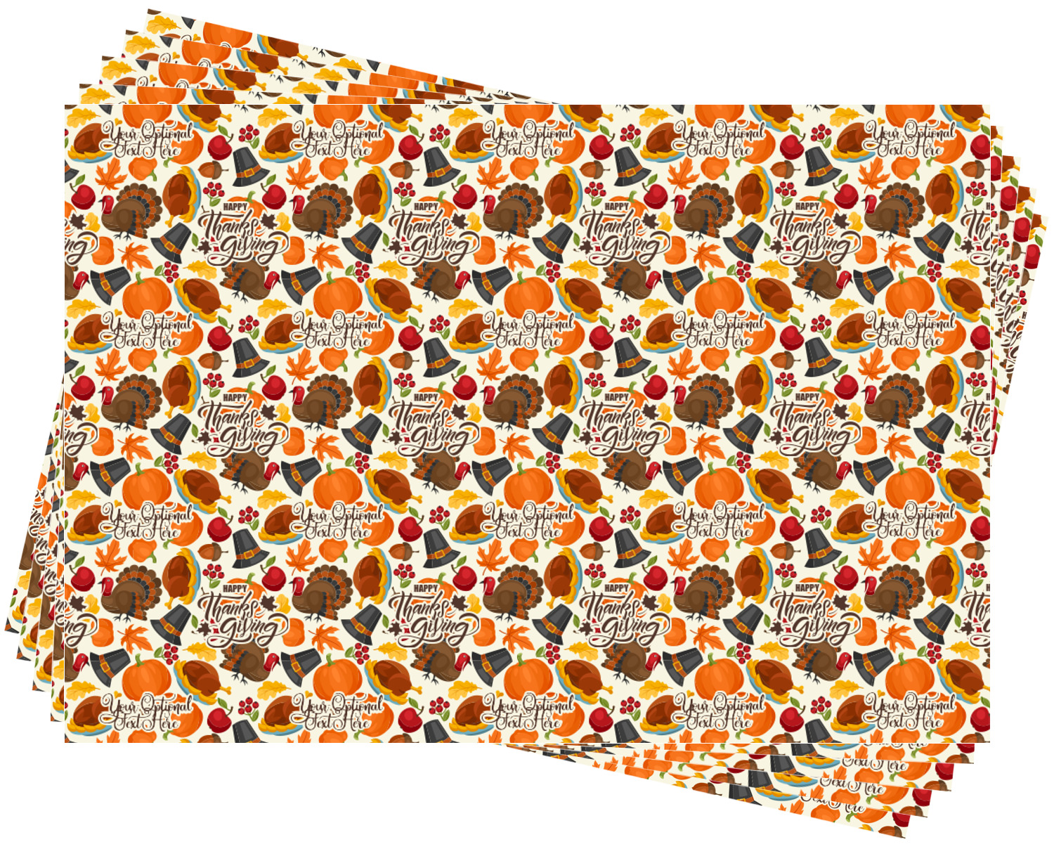 This traditional thanksgiving design is perfect for celebrating the season of giving thanks. This classic design includes turkey, pumpkin, pilgirm hat, berries, apples, acorns and leaves. The background on this design is re-color-able; and we chose the light yellow from the fall / thanksgiving color palette in our customization system.