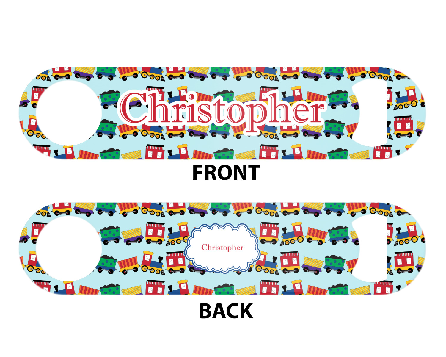 Made from stainless steel, these beer bottle openers are 7 by 1.625 inches, giving you plenty of leverage when trying to open a stubborn bottle. On one end of this personalized bottle opener, you'll find a circular hole for you to hang and display your opener. On the opposite end, you'll find the tool used for opening bottles. This opener in particular has the same structure and style as professional bartender bottle openers. Your customization is sublimated onto both the back and front, and both sides can be customized individually. Choose from one of our two base colors - white or silver.