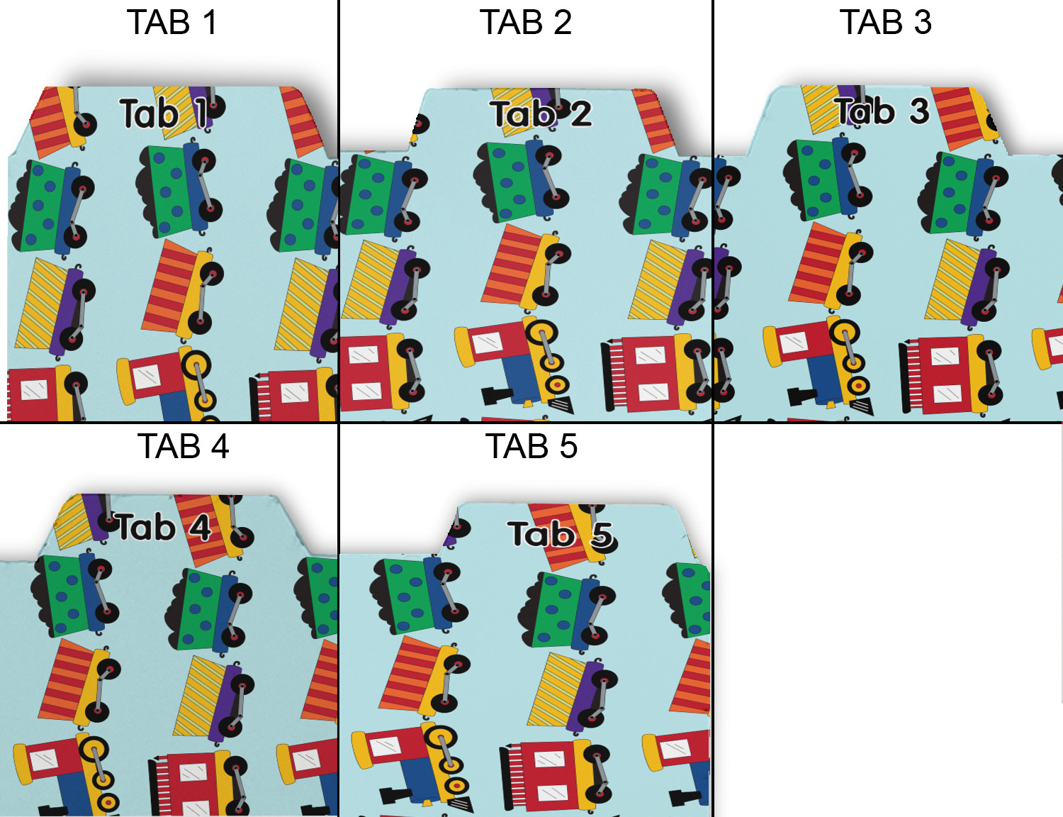 Whether you use binders at school or at work, we have designs to suit all of them. Available in 5 or 6 tab sets, you are sure to find a set to suit your needs. The back of each one is white and can be used to take notes, write vital information on, etc.
