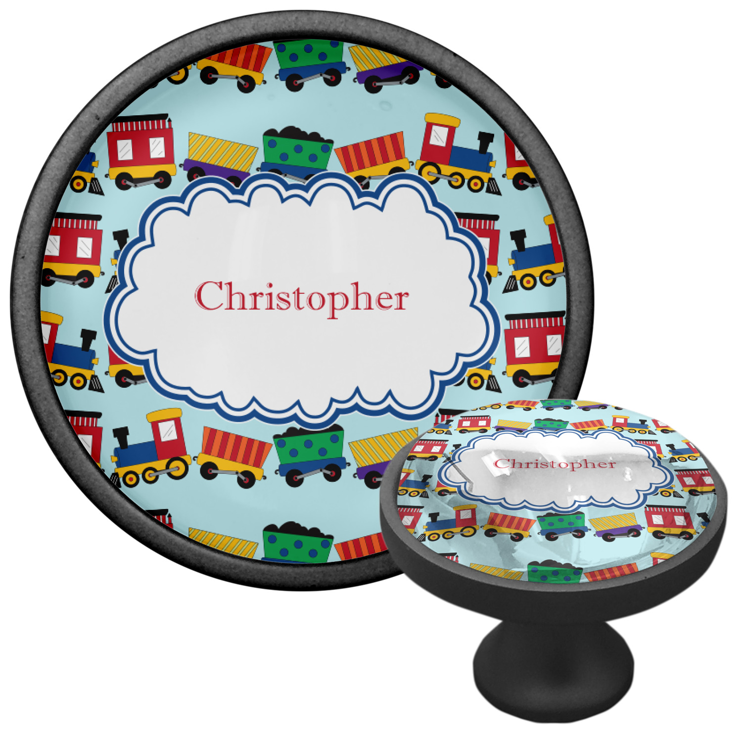 We sell these cabinet pulls in two different colors to better match your room's color scheme. We offer an oil-rubbed bronze base that is black in color, and a satin nickel option, which has a silver color. Your design is displayed across a high gloss vinyl insert that is placed on top of these cabinet handles. We then place a 1 inch thick glass cabochon atop the design, which seals the cabinet knob and makes the colors of your customization stand out. These custom cabinet knobs are approximately 1.3 inches in diameter. Your purchase includes a 1 inch screw that can be used to mount the knob to any cabinet in your home.