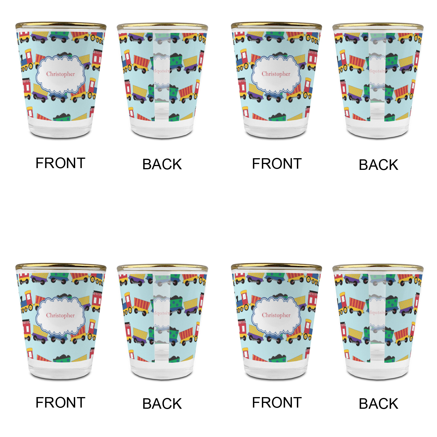 Made with frosted glass, these shot glasses are printed in full color with the design of your choice. They are a standard 1.5oz shot glass and are 2.4" tall. The print is wrapped around the shot glass in a full wrap and boldly displays your customization.