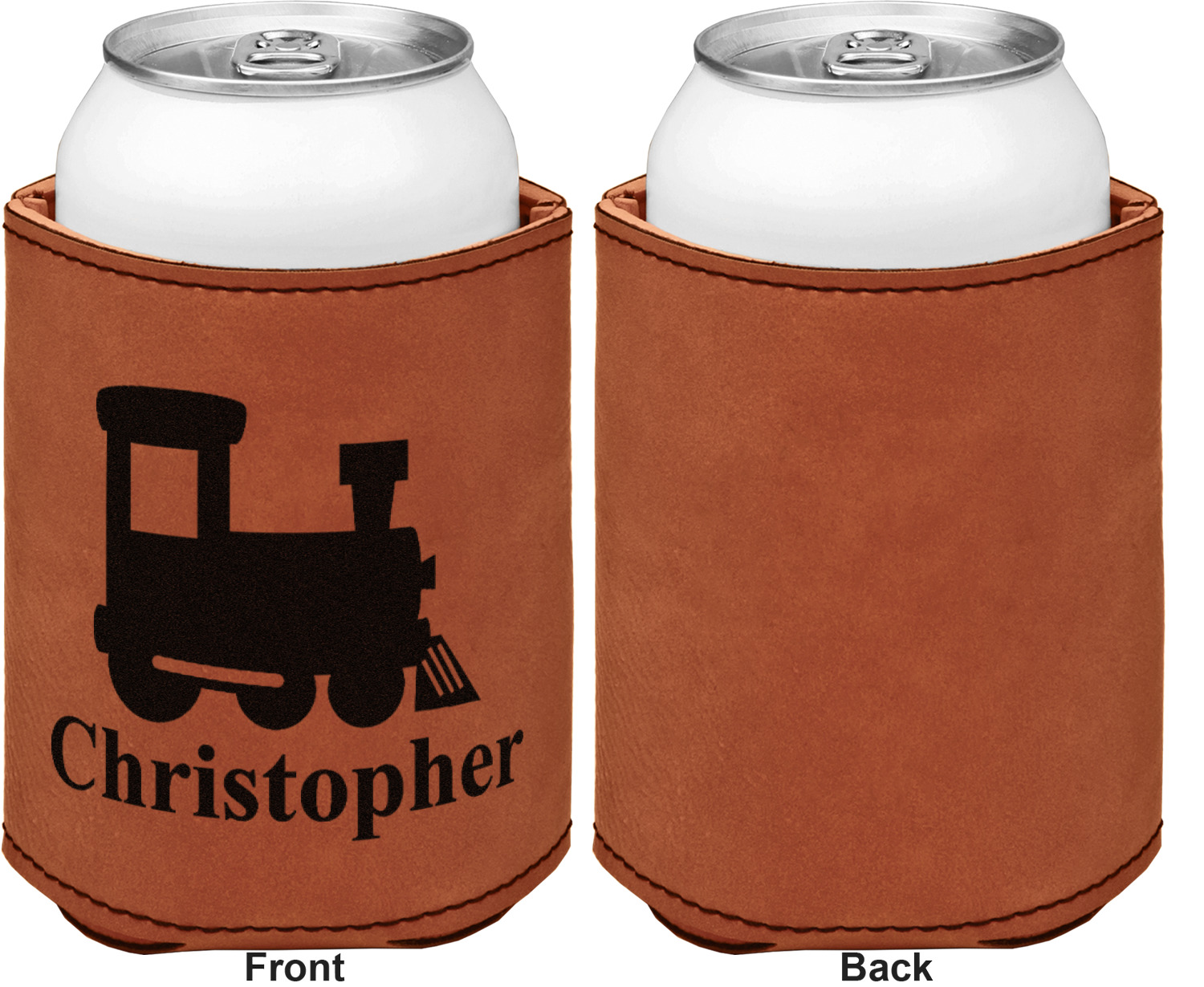 This can sleeve is made from a cognac-brown leatherette and stitched with a sturdy, black thread. A slim padding lines the inside of your can sleeve to allow for a better fit once your drink is inserted. The sleeve itself measures at 4 by 4.5 inches, allowing this custom can sleeve to accommodate most canned drinks. Your personalized design can be engraved on the front and back, or solely the front. When laser-engraved, your design appears as a black coloration which contrasts the leatherette nicely.
