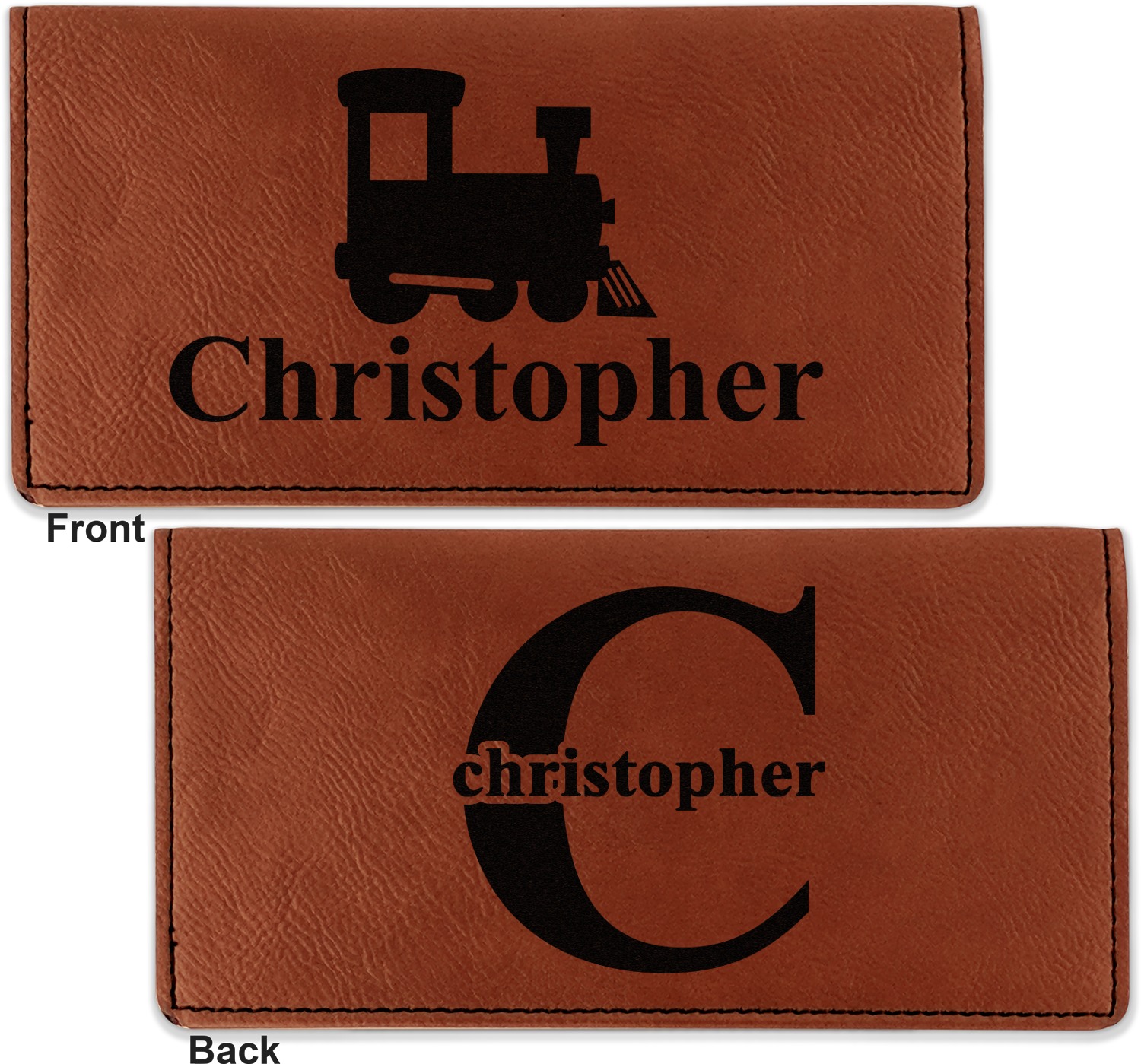 Go into our design center to start personalizing. Your checkbook cover will be laser engraved, making the graphic or text a black color. Choose a fun saying, monogram, or font to go on your checkbook cover. You have the opportunity to do it double or single sided.
