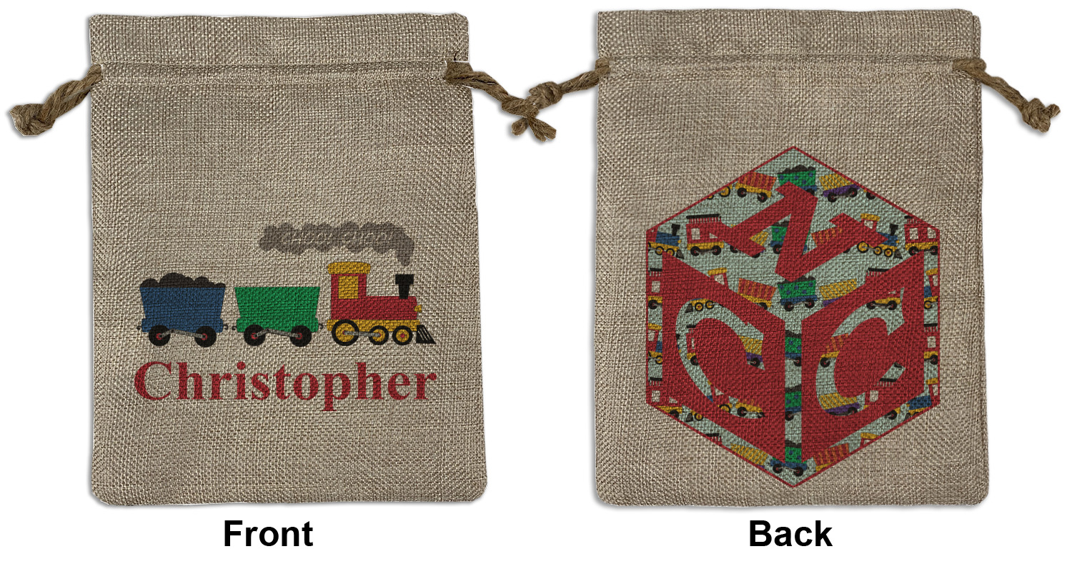 We sell our Burlap Gift Bags in 3 variant sized bags. Made with burlap polyester, each personalized bag can be secured with a twine drawstring pull. Your custom design is available to print on one side or both sides - completely up to you! The sizes of the bags measure approximately 4.5" x 6.5" for the smallest size, 6.5" x 8.0" for the medium size, and 6.5" x 13.5" for the large-sized bag.