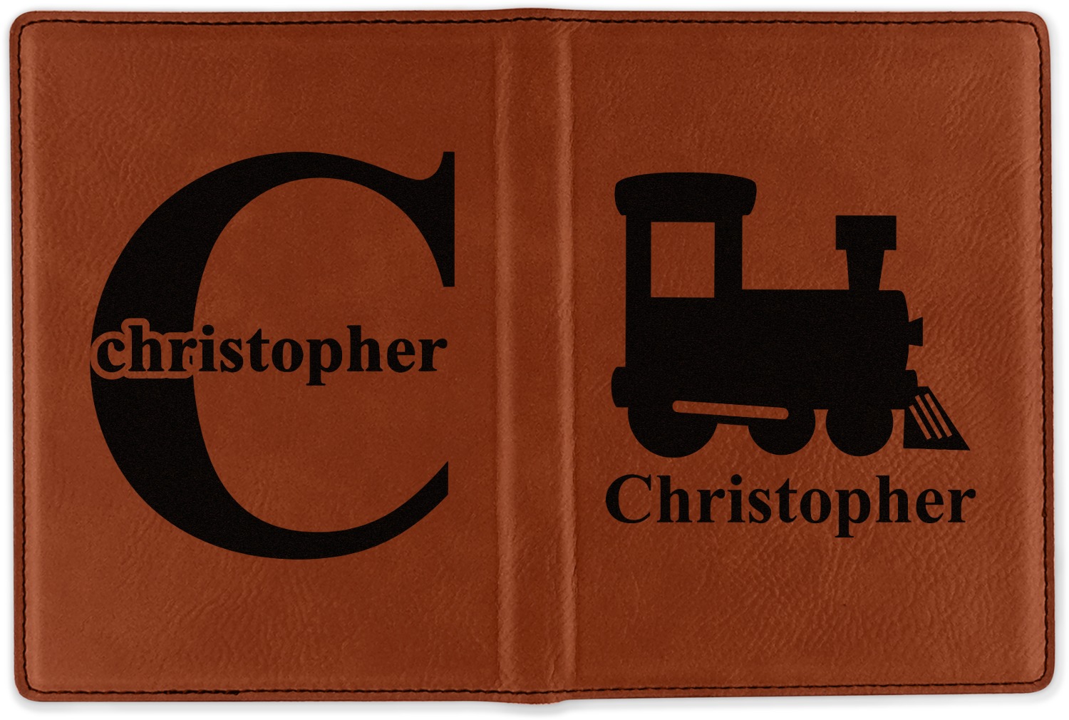 Although they are faux leather, these passport holders feel great in your hand. They are laser engraved either just on the front or the front and back. The image that is engraved onto your passport holder will be shades of black.