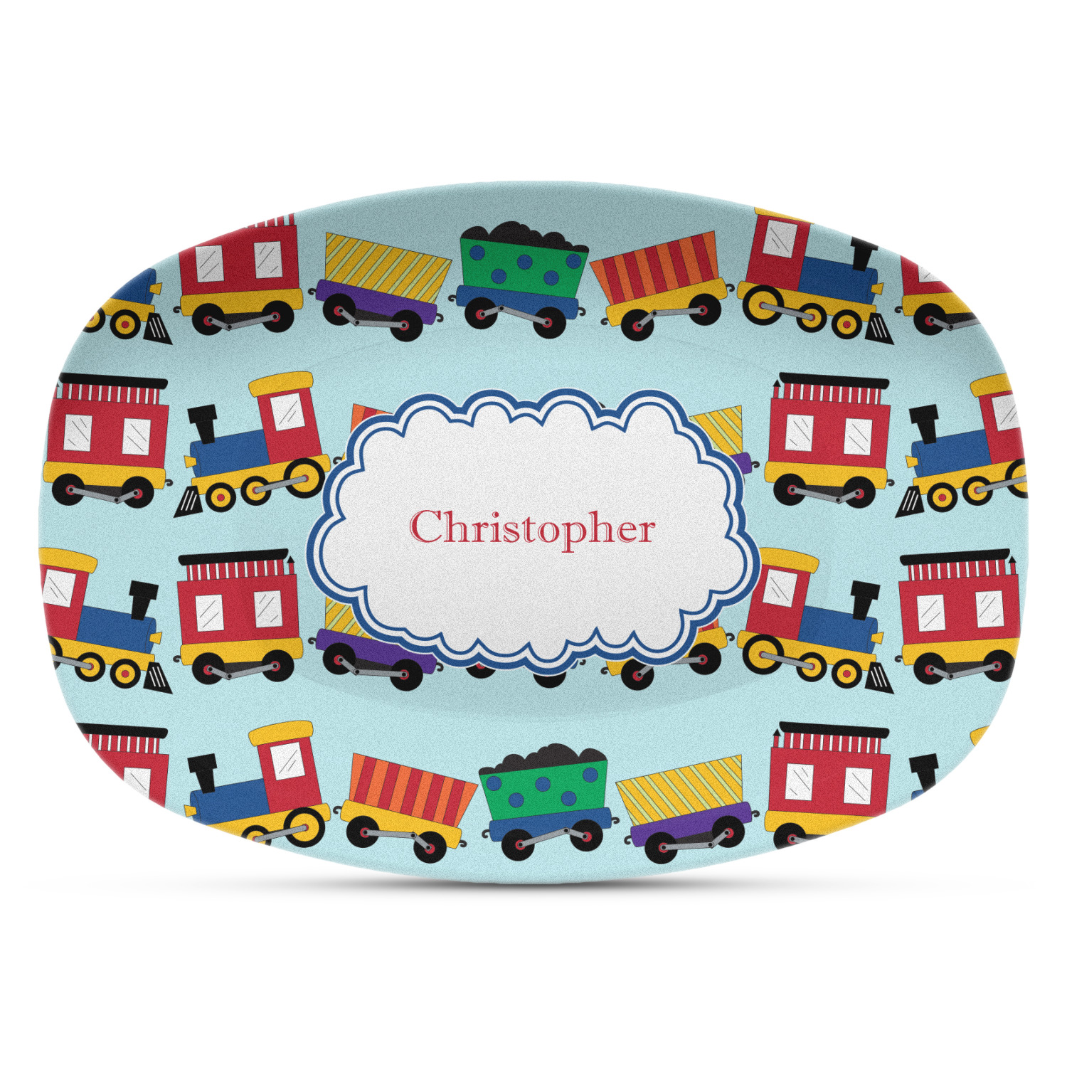 These serving platters are made from a composite, thermo-set, polymer plastic that gives it the versatility, durability, and weight of a melamine platter, without any of the downsides of melamine. These personalized platters, can withstand temperatures up to 250 degrees Fahrenheit, for up to 60 minutes. No harmful chemicals, such as BPA, formaldehyde, and DEHPs were used in the manufacturing of this product. This large serving platter measures at 14" x 10.25", and is spacious enough to hold any of your appetizers or bite-sized desserts. The platter exhibits your personalization across the entirety of its front.
