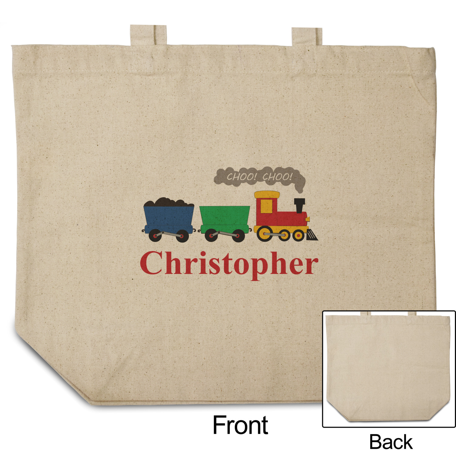 These cotton totes are washable and easy to care for, and they can be folded flat for storage. Your artwork, logo, or photo is printed in full color directly on the cotton tote in the front.