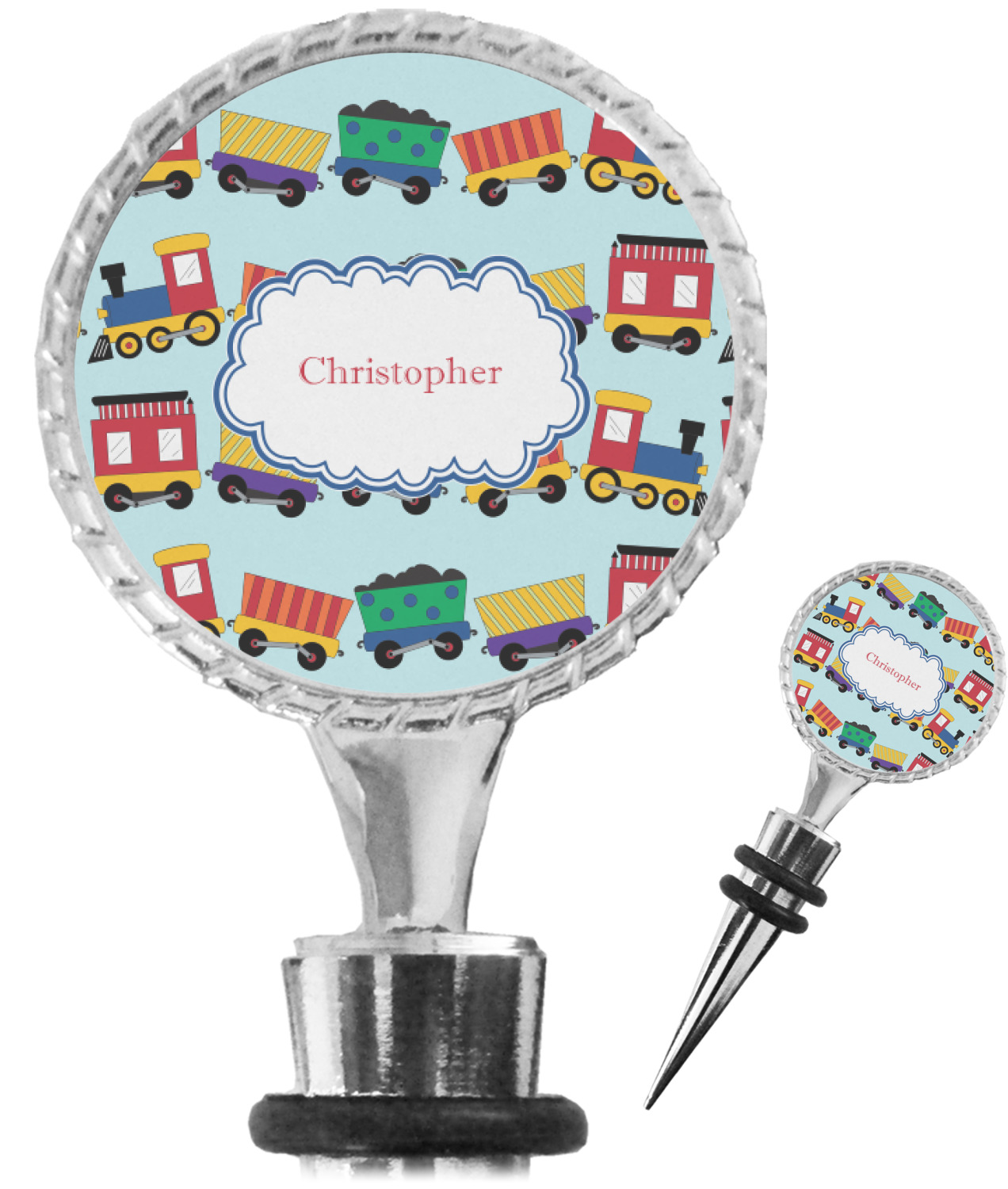 The top part of your bottle stopper is comprised of a zinc ring that displays your customization(s) in its middle, on both sides. The ring is heavy duty, with a bright chrome finish. The body of the wine stoppers have two silicone rings to provide an airtight seal. These wine bottle stoppers measure at 1.625" L x 0.8125" W x 4.625" H; your custom wine stopper is meant to fit into most standard-sized wine bottles.