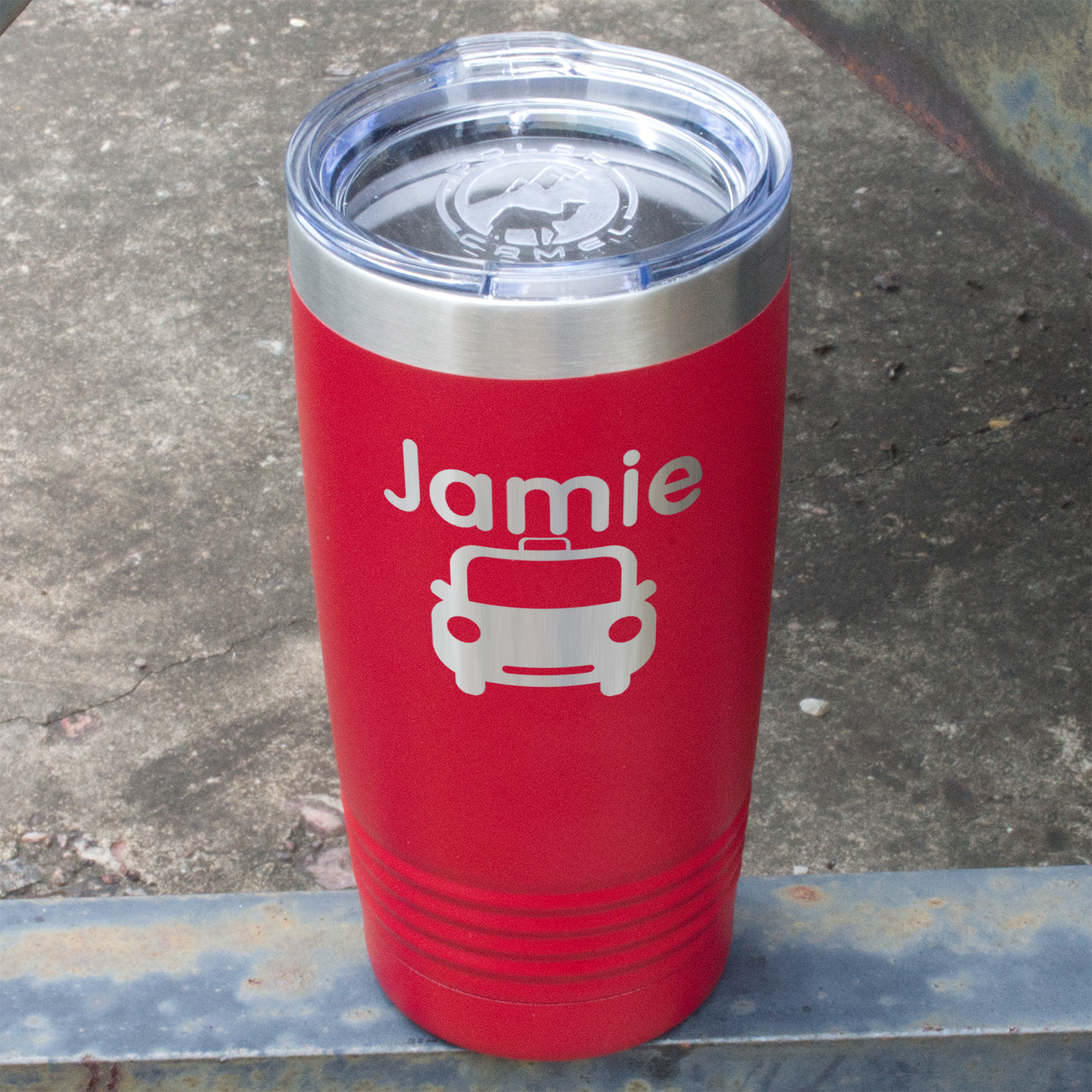 Available in 8 unique colors, these cups are crafted from 18/8 stainless steel and powder coated for their durable finish. With the 8 colors being Black, Pink, Red, Teal, White, Grey, Royal Blue, and Olive Green, you are sure to find a cup to fit your personality. You can chose to engrave on the front or the front and back of the cup. Use our design studio to design your own cup and we laser engrave it for you.