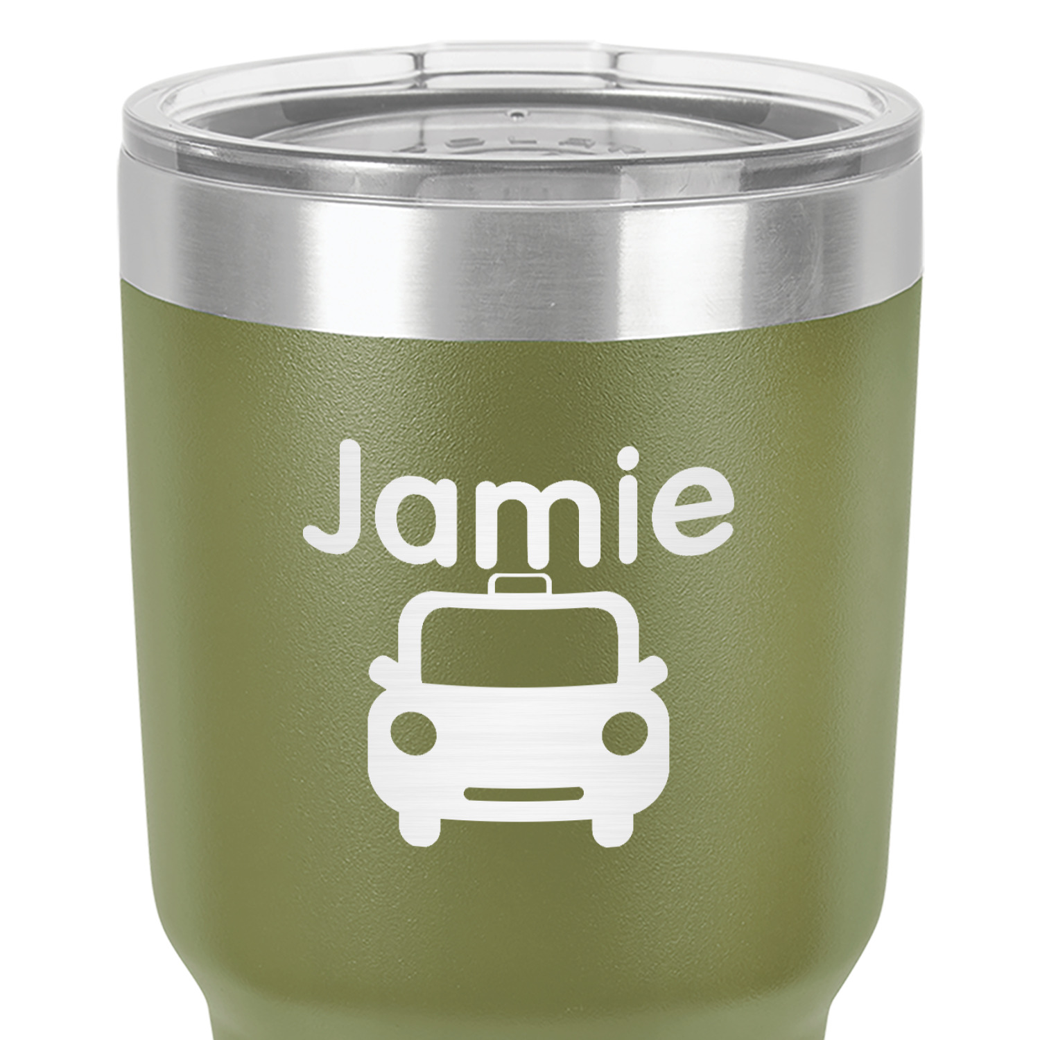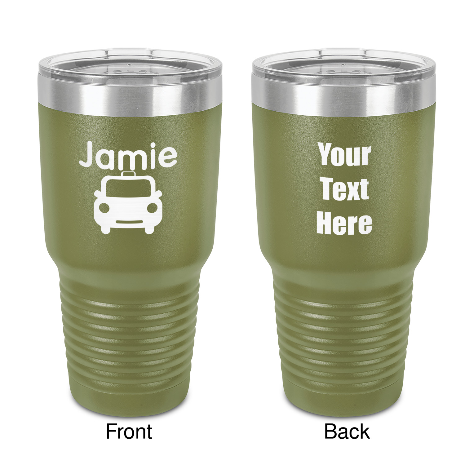With our personalized 30 oz double wall stainless steel tumblers, you'll never have to settle for a plain, boring tumbler again! These tumblers will be a wonderful addition to your drinkware collection and will make those long commutes much brighter. Personalize one for yourself, or give these personalized tumblers as a gift to relatives, friends, or coworkers!