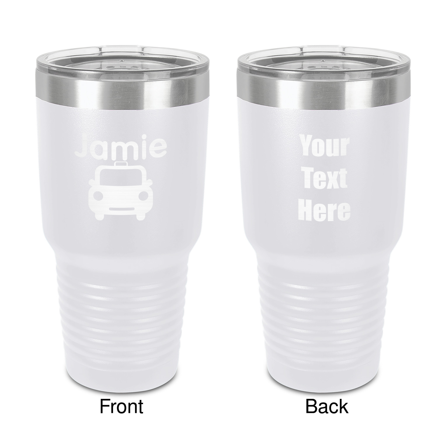 With our personalized 30 oz double wall stainless steel tumblers, you'll never have to settle for a plain, boring tumbler again! These tumblers will be a wonderful addition to your drinkware collection and will make those long commutes much brighter. Personalize one for yourself, or give these personalized tumblers as a gift to relatives, friends, or coworkers!