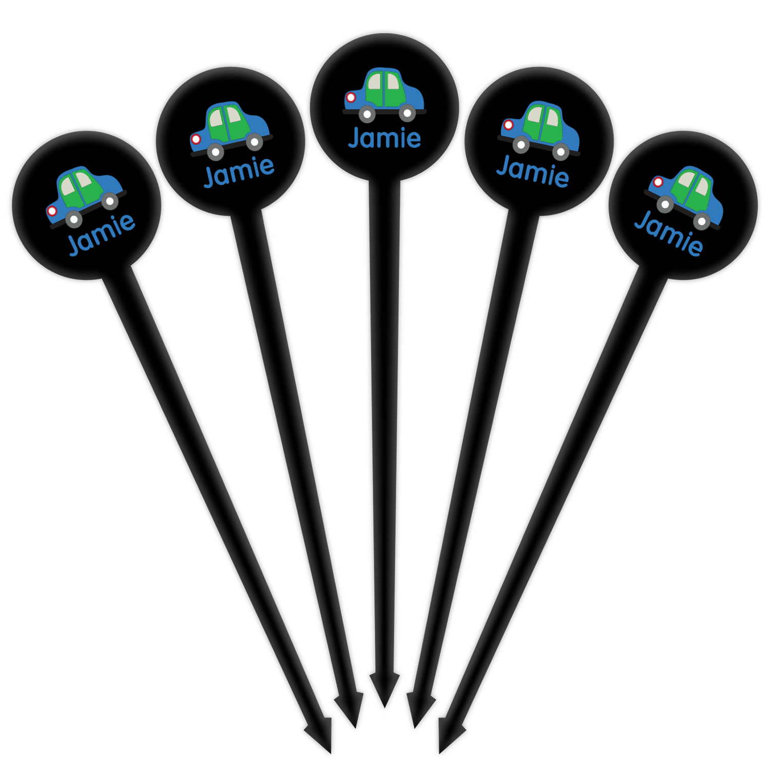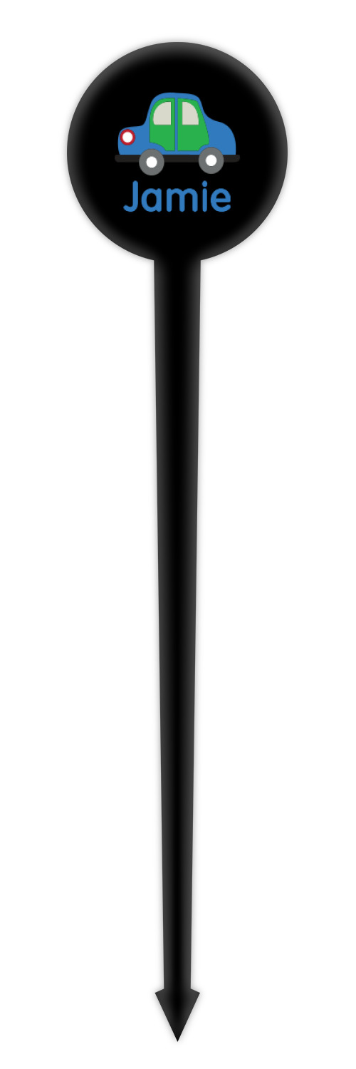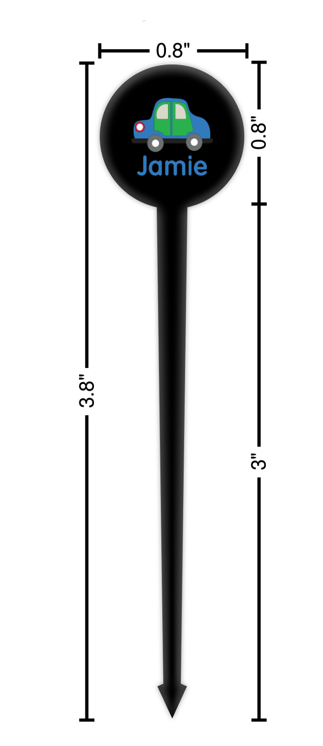 Race Car Designs for 4" Round Plastic Food Picks - Black - Single-Sided