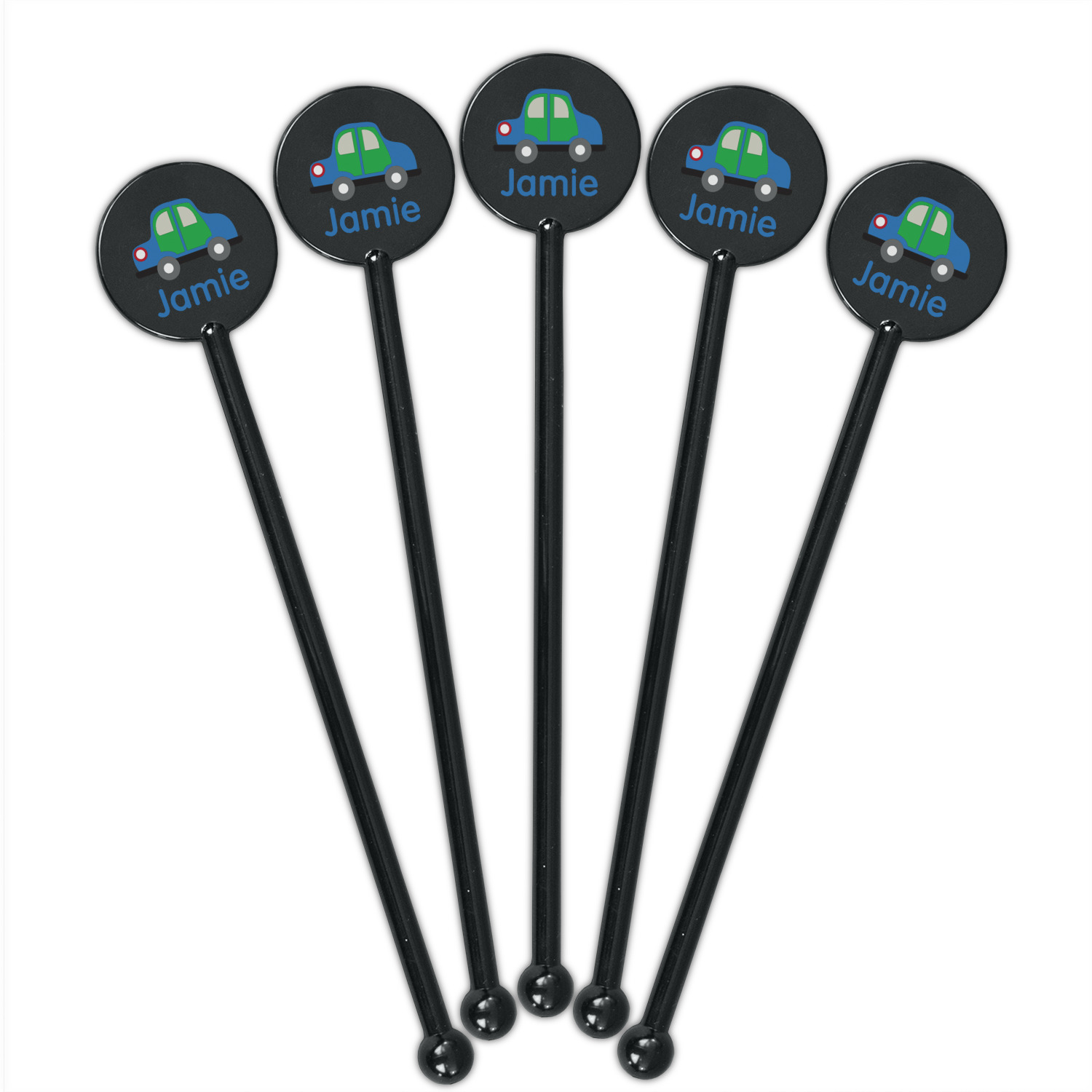 Race Car Designs for 5.5" Round Plastic Stir Sticks - Black - Single-Sided
