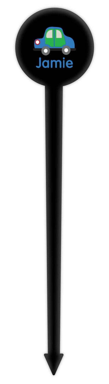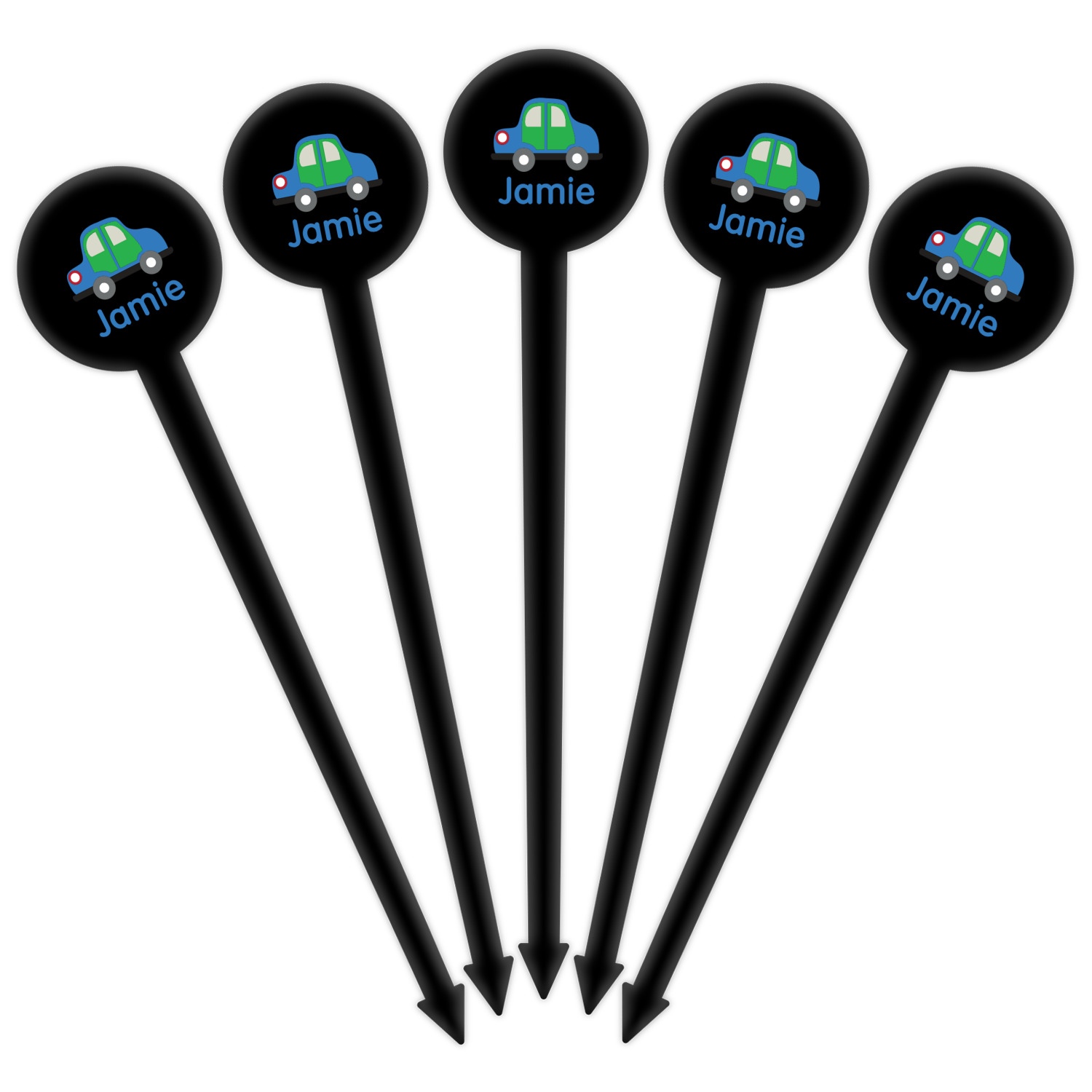 Race Car Designs for 6" Round Plastic Food Picks - Black - Single-Sided