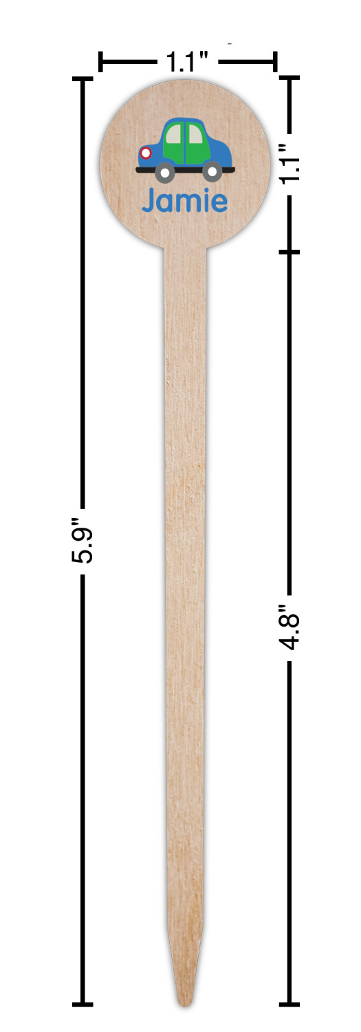 Race Car Designs for 6" Round Wooden Food Picks - Single-Sided