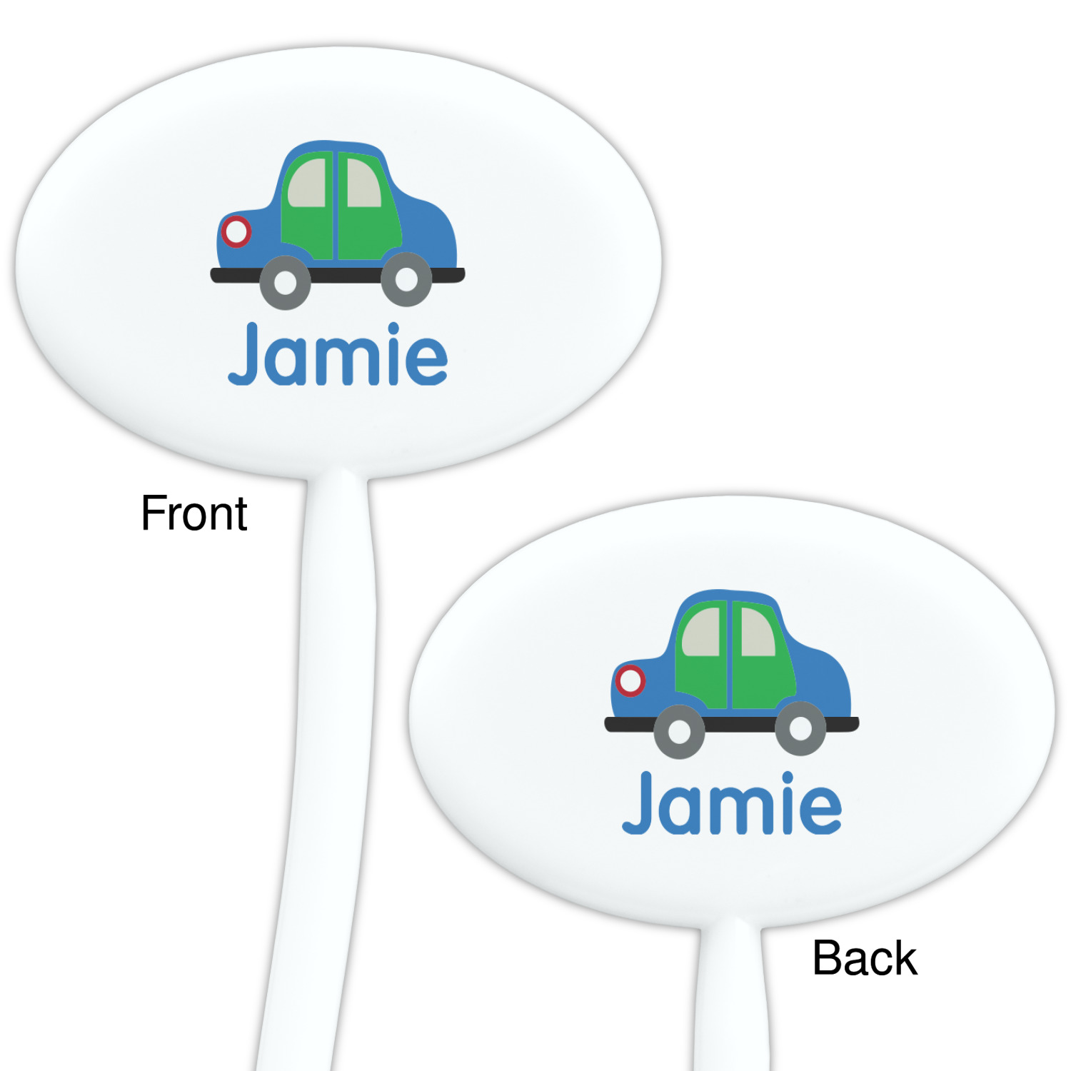 Race Car Designs for 7" Oval Plastic Stir Sticks - White - Double-Sided