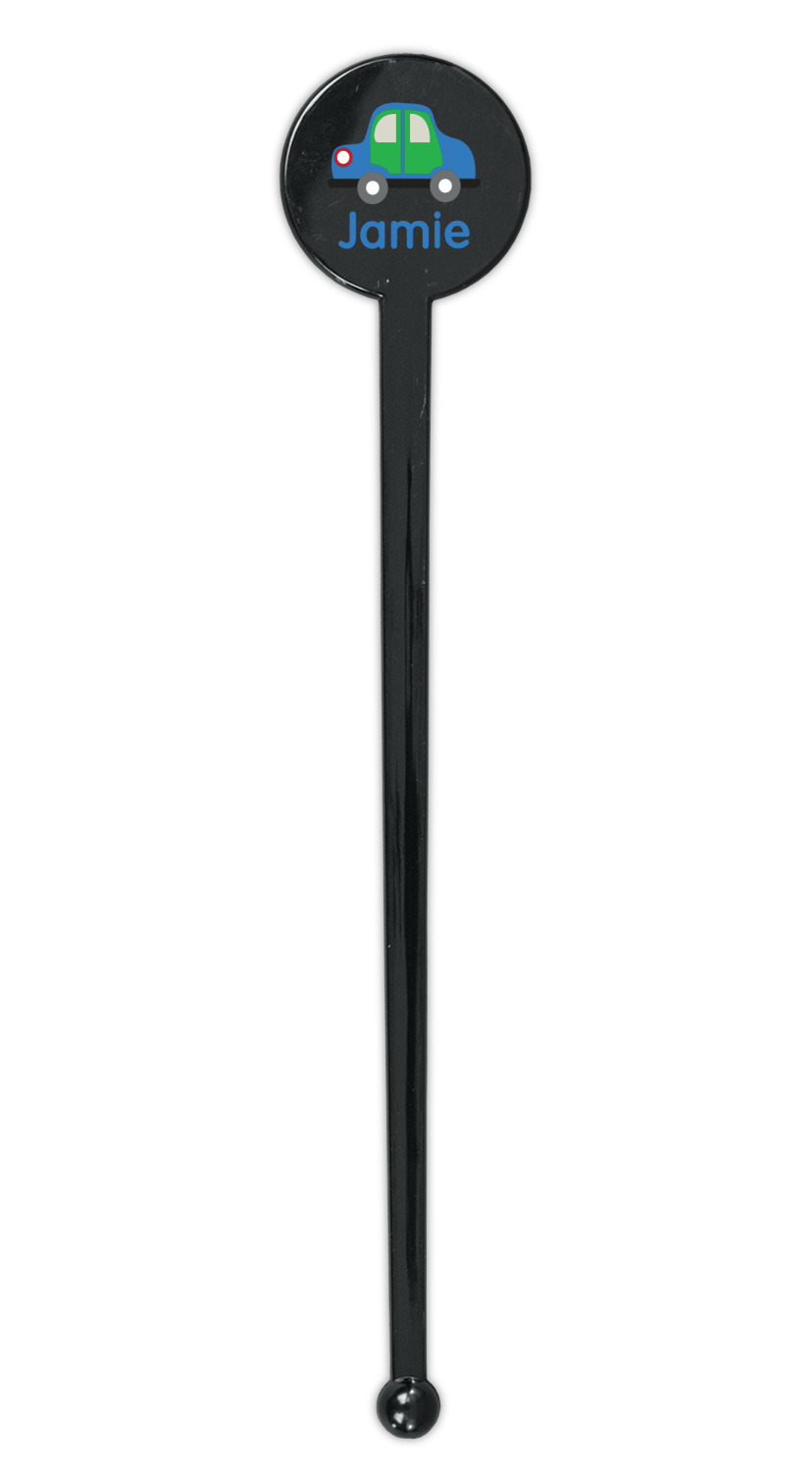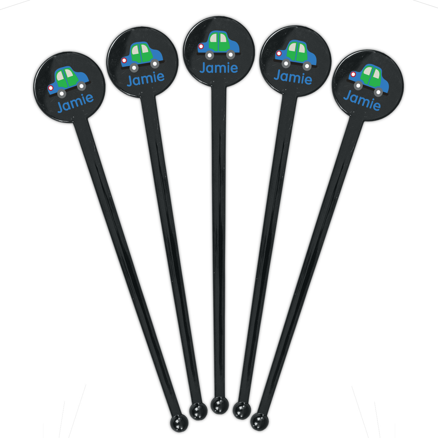 Race Car Designs for 7" Round Plastic Stir Sticks - Black - Single-Sided