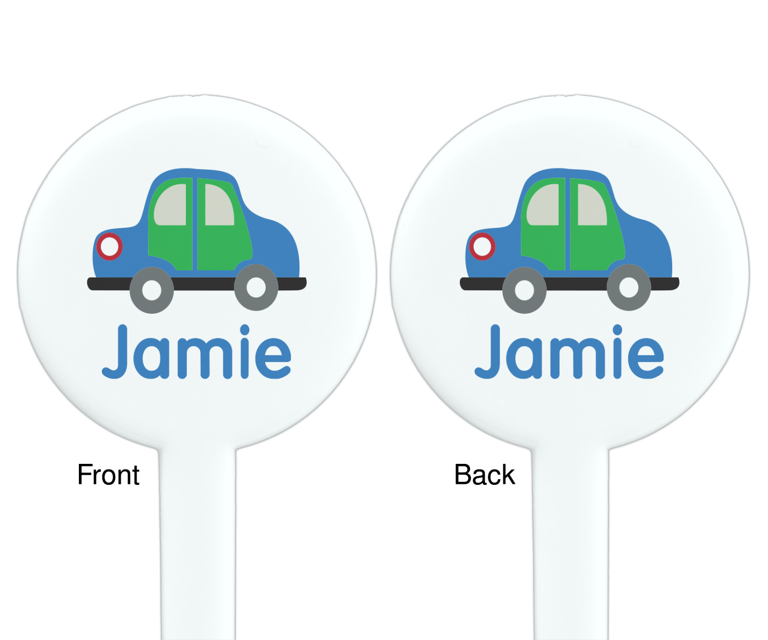 Race Car Designs for 7" Round Plastic Stir Sticks - White - Double-Sided