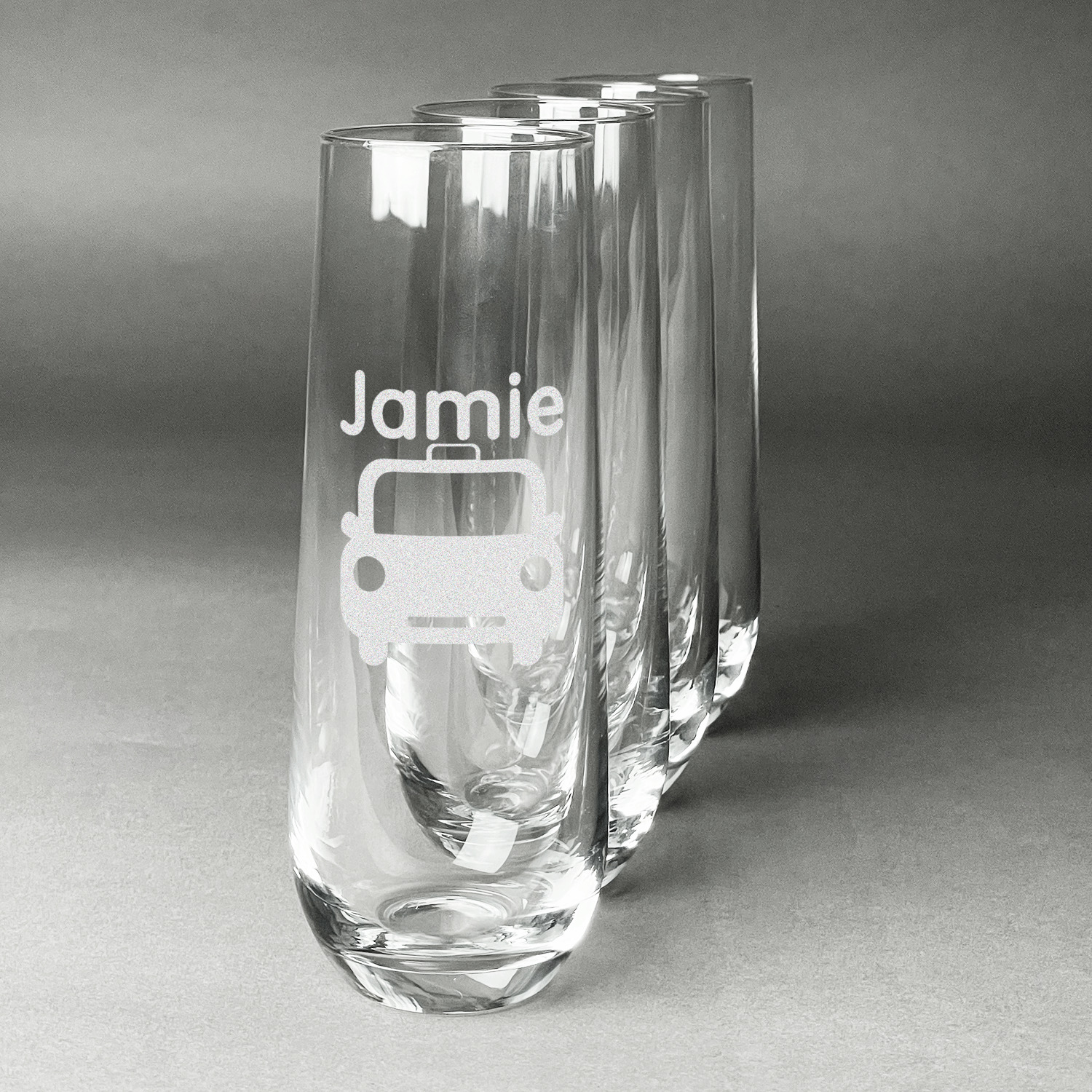 Design your custom stemless champagne flutes and we will then laser engrave your unique design on them for you. Whether they are a special gift for a bride and groom, for your New Years Eve party, or a bachelorette party you are sure to be able to add a custom personalized touch to make them perfect for the occasion.