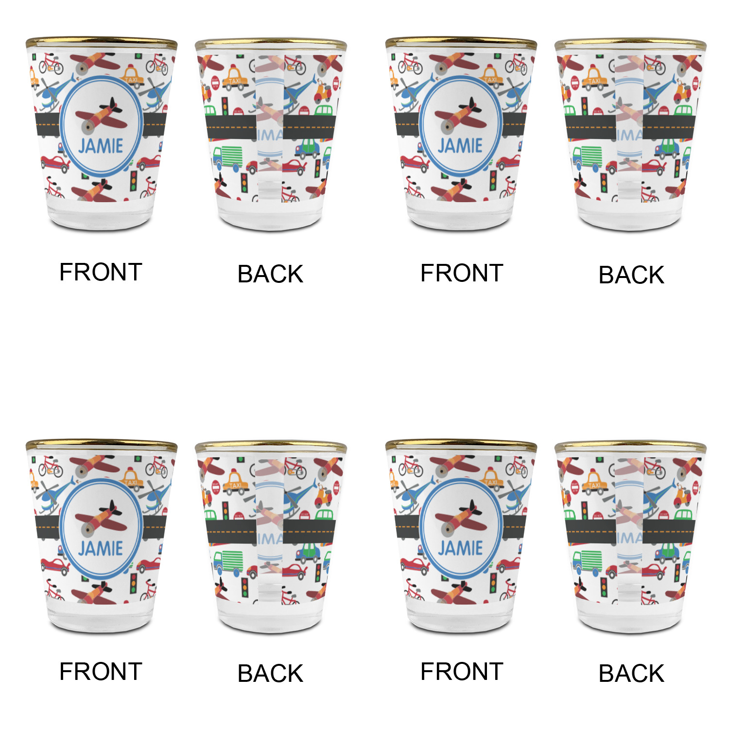 Taxi Designs for Glass Shot Glasses - 1.5 oz - with Gold Rim - Set of 4