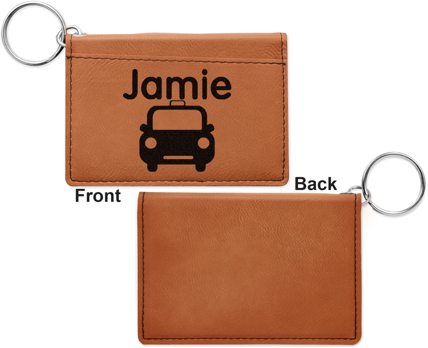 Interested in more leatherette or leather accessories? Check out our Apparel and Accessories department, where you can also personalize our phone wallets and money clips. If you're looking for customizable keychains to add to your keyring card holder, have a look at our round, heart, and diamond keychains. These keychains and more can be found in our Car and Automotive category.