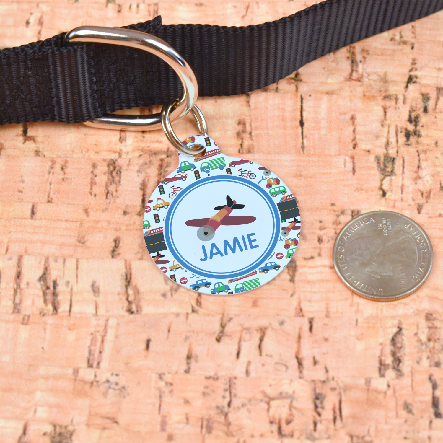 Go ahead; skip the monotony of plain pet ID tags with your very own, customized & personalized, round pet tag! This pet ID tag, fitting for both cats and dogs, will catch the eye of any onlooker (humans, canines, and felines, alike!) and accentuate your pet's individual personality.