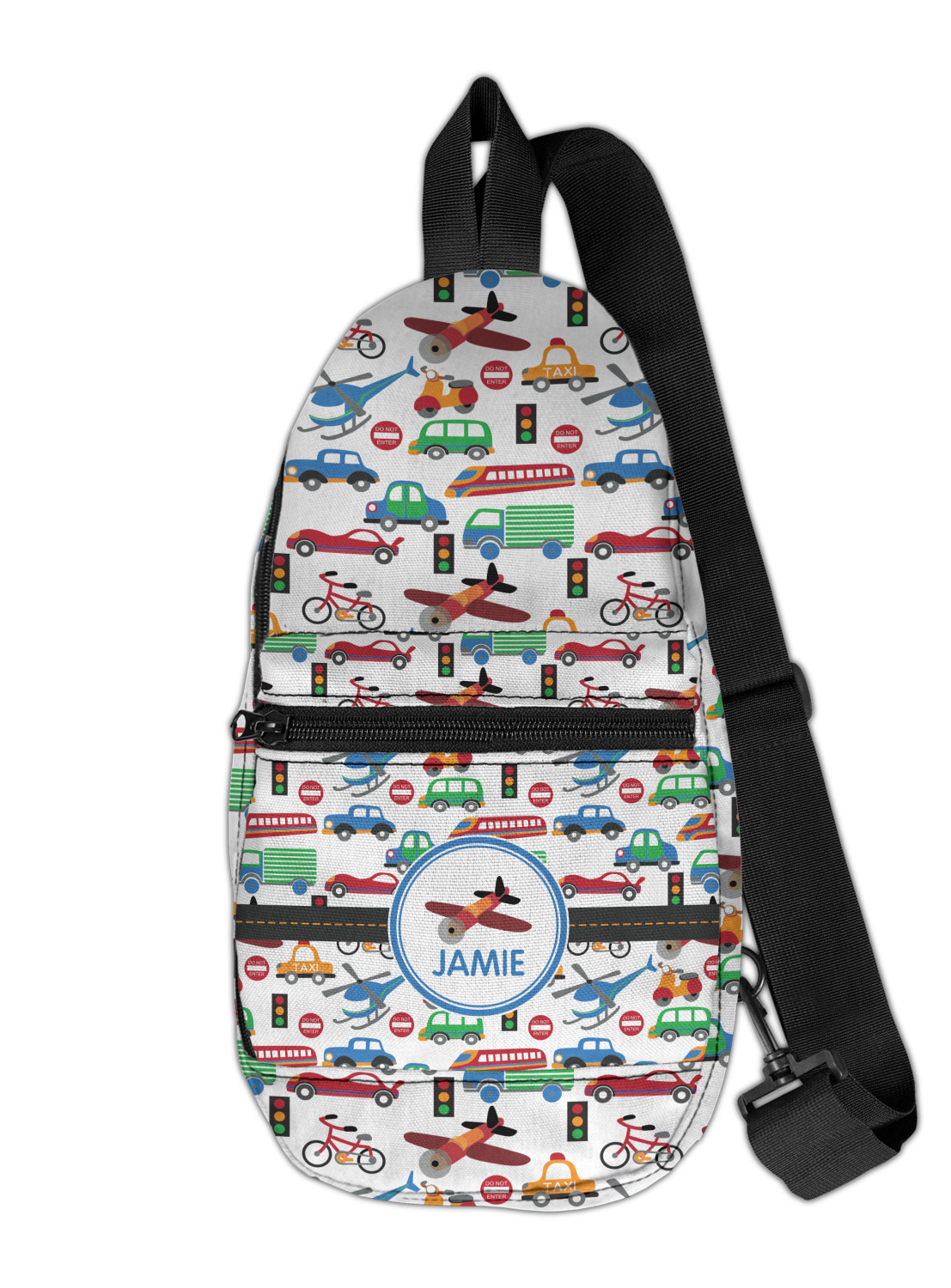 These sling bags are made from a durable polyester canvas. The fabric is printed with your design, then cut and hand sewn right here in the USA.