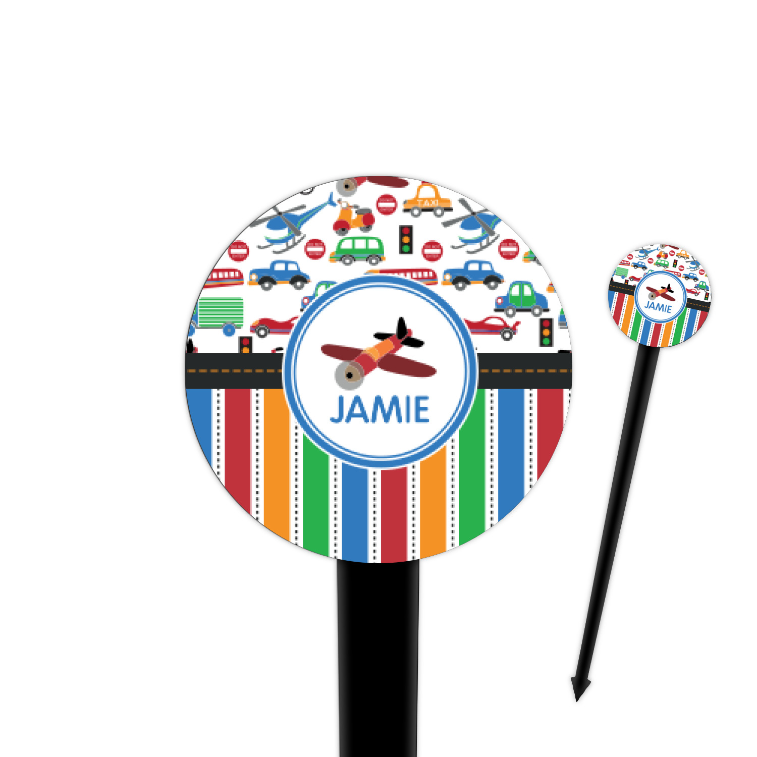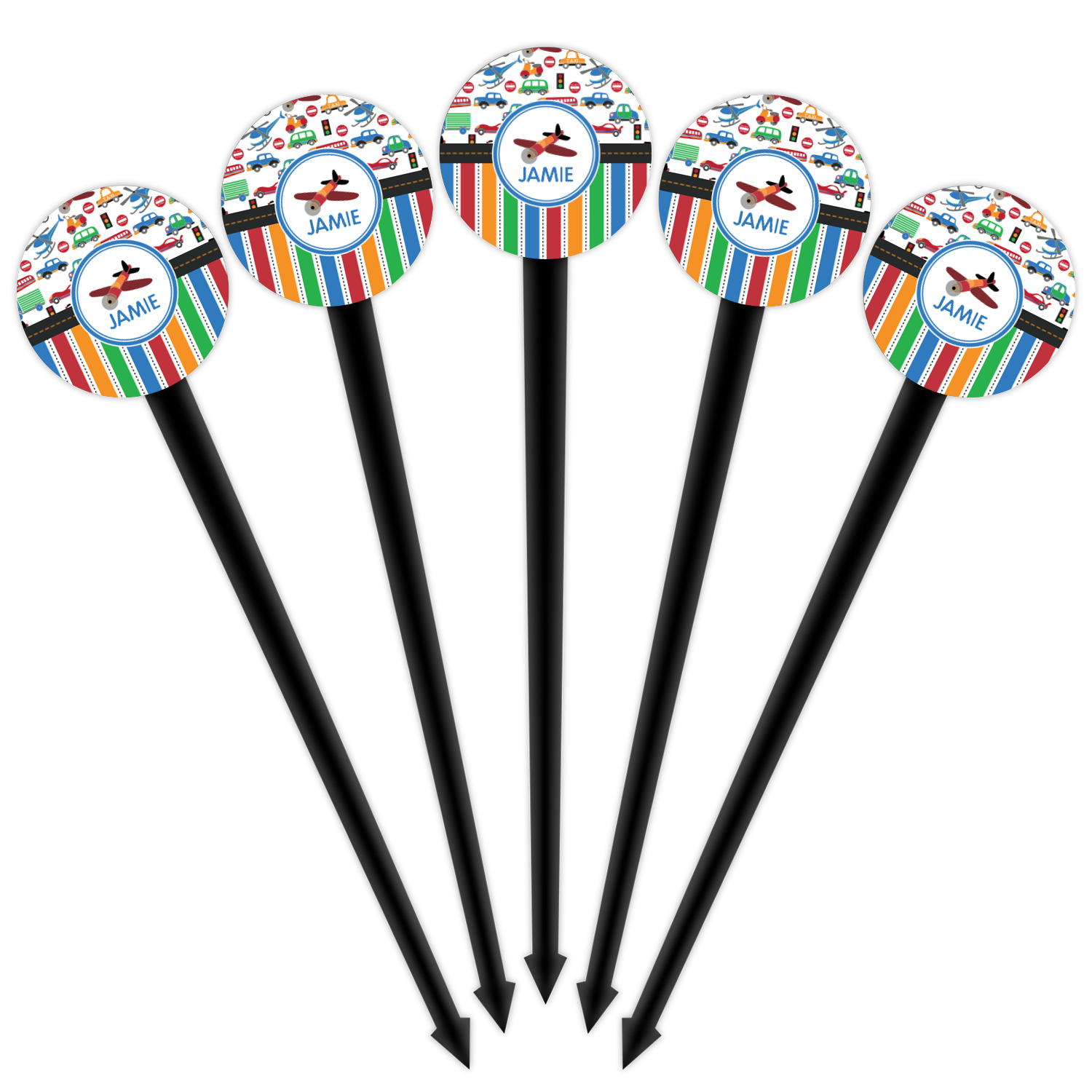 Planes Designs for 4" Round Plastic Food Picks - Black - Single-Sided