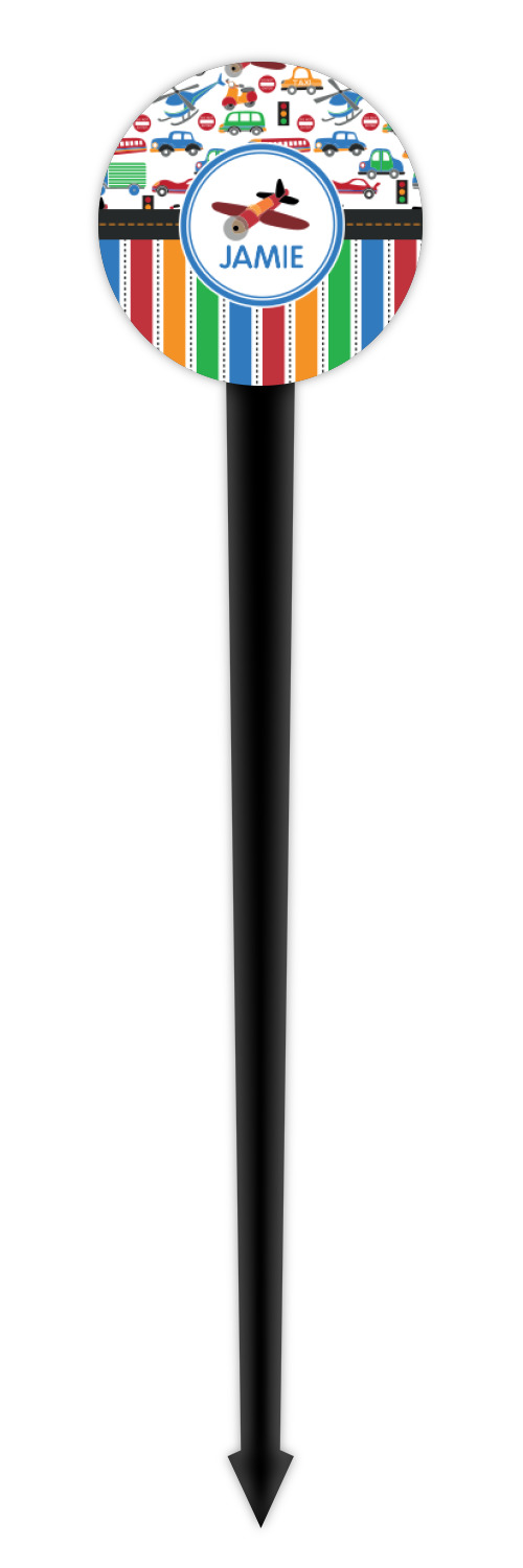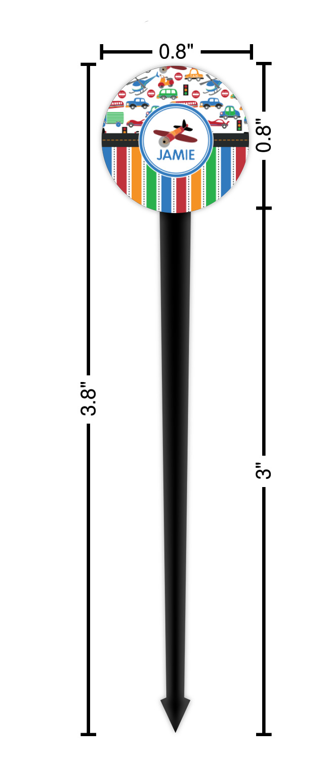 Trucks Designs for 4" Round Plastic Food Picks - Black - Single-Sided