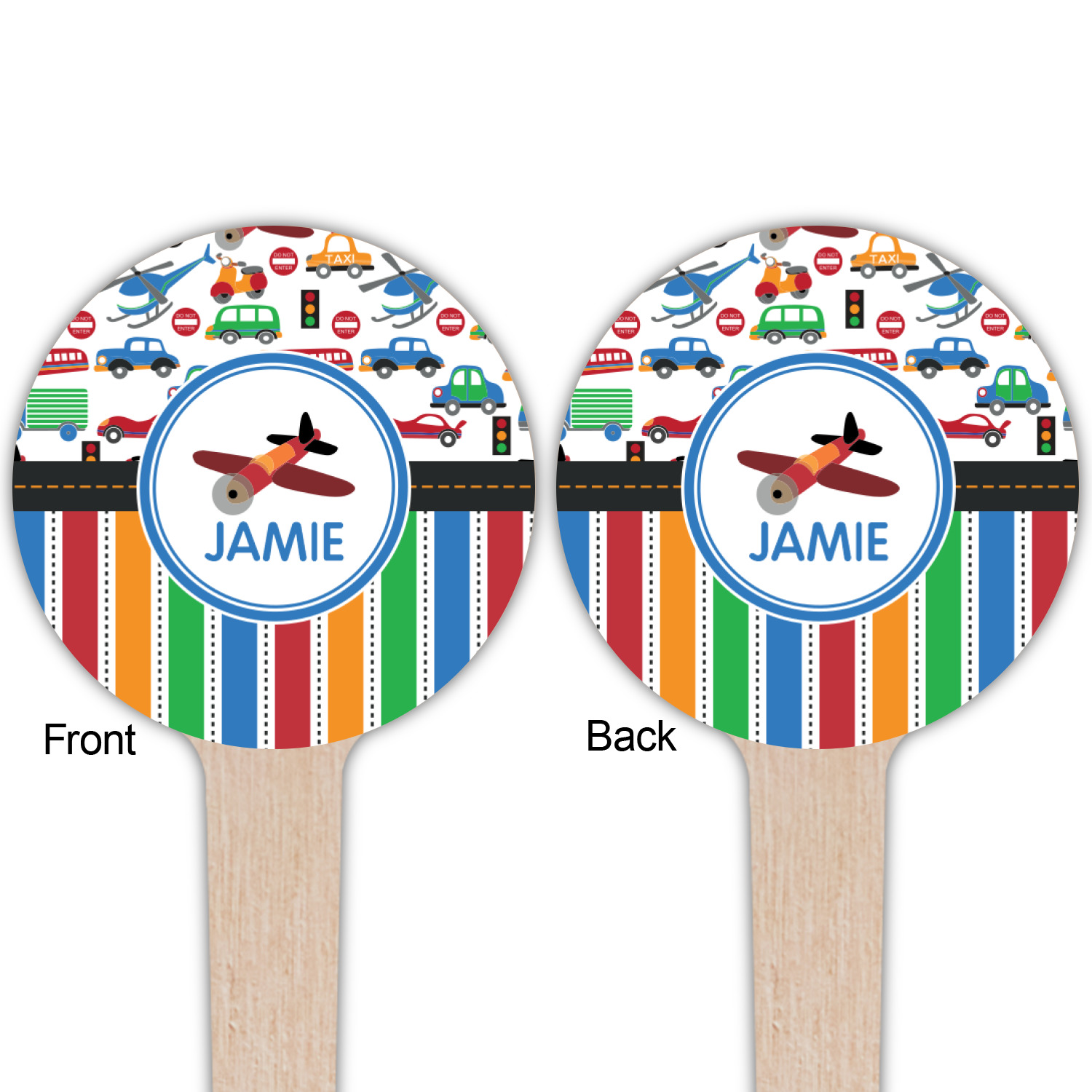 Planes Designs for 4" Round Wooden Food Picks - Double-Sided