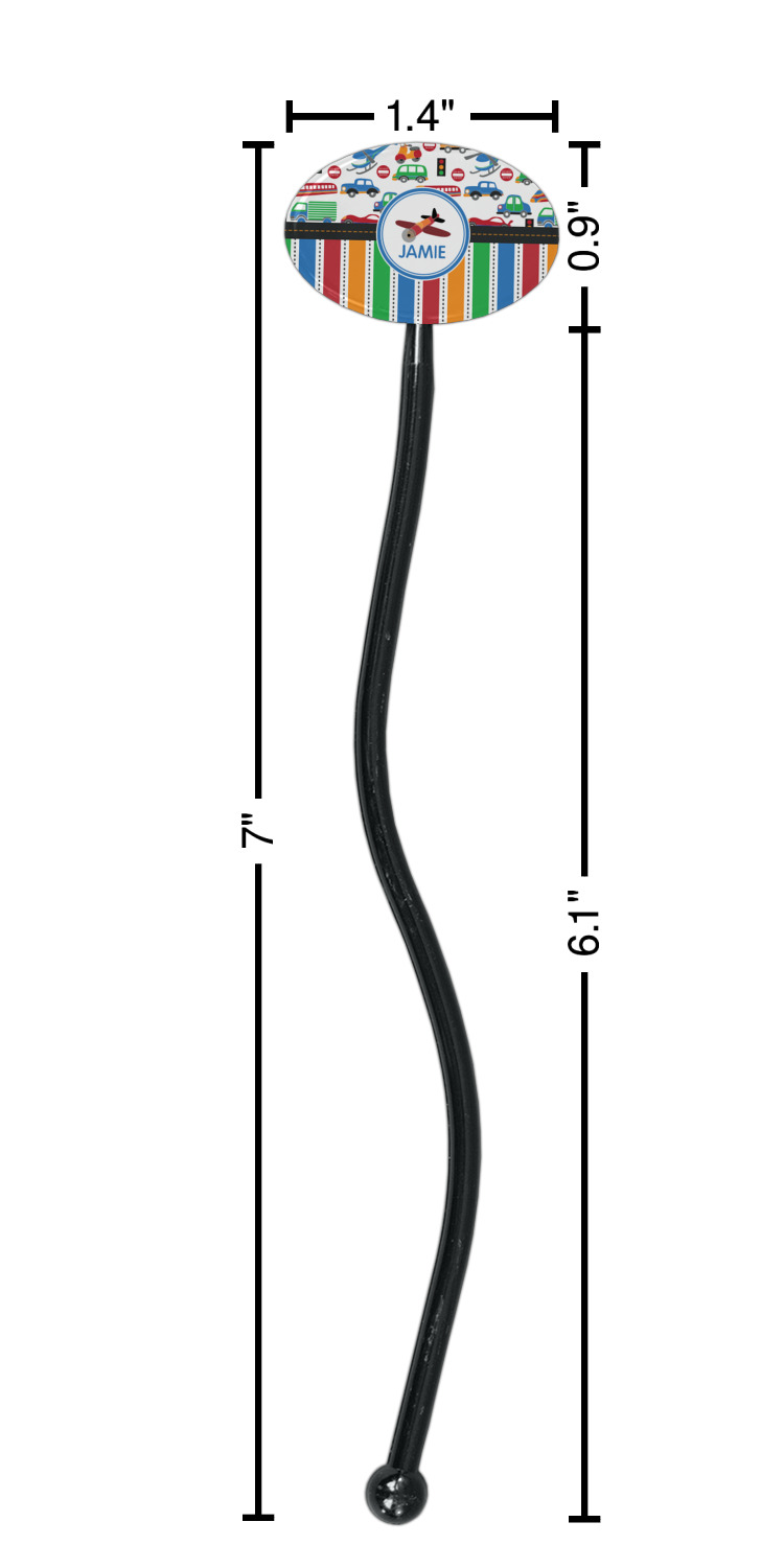 Planes Designs for 7" Oval Plastic Stir Sticks - Black - Single-Sided