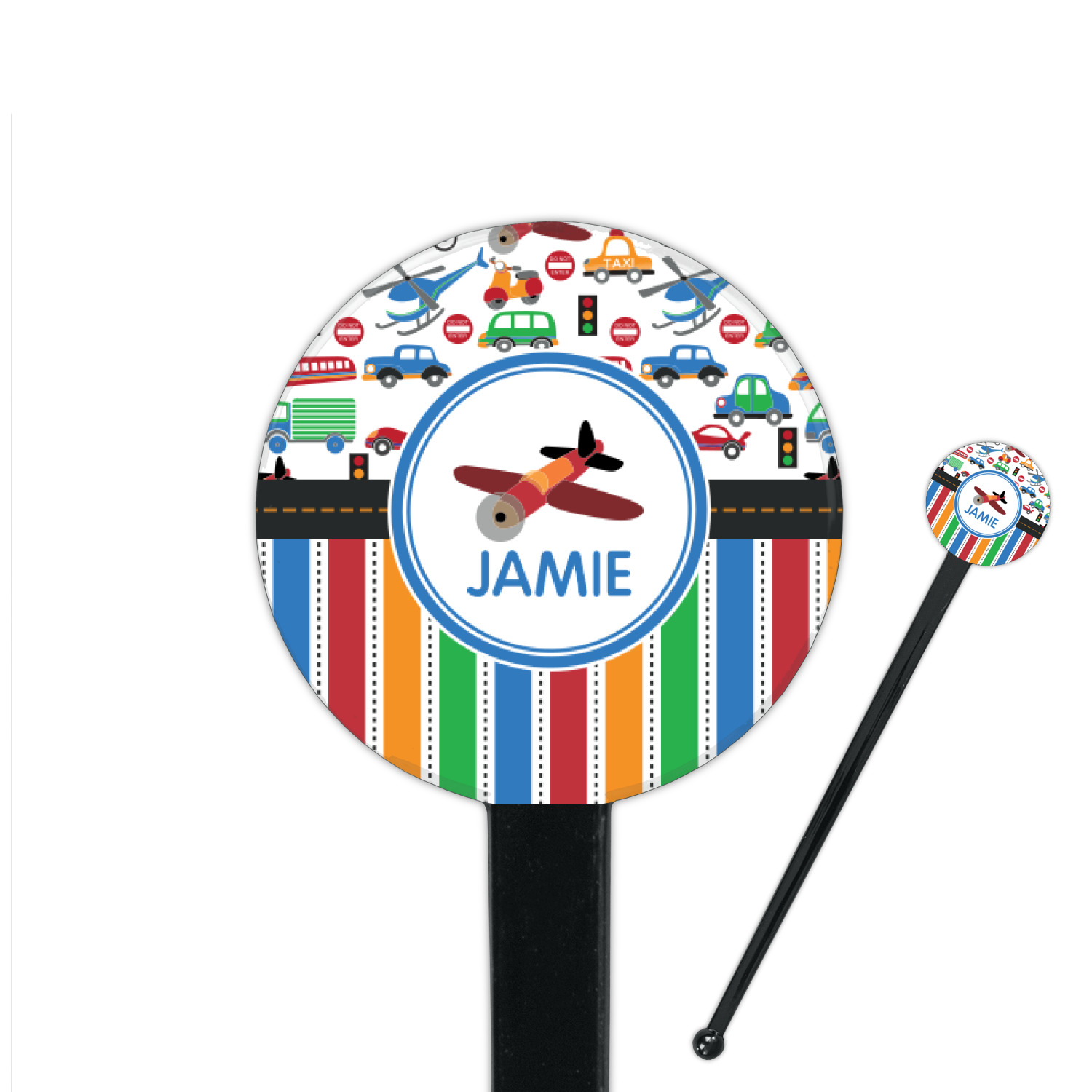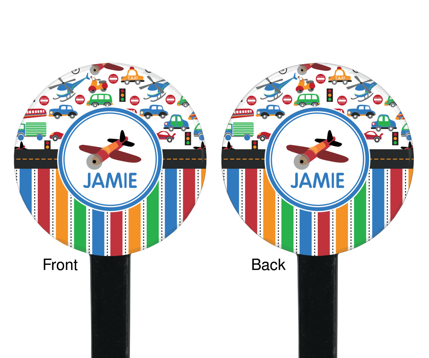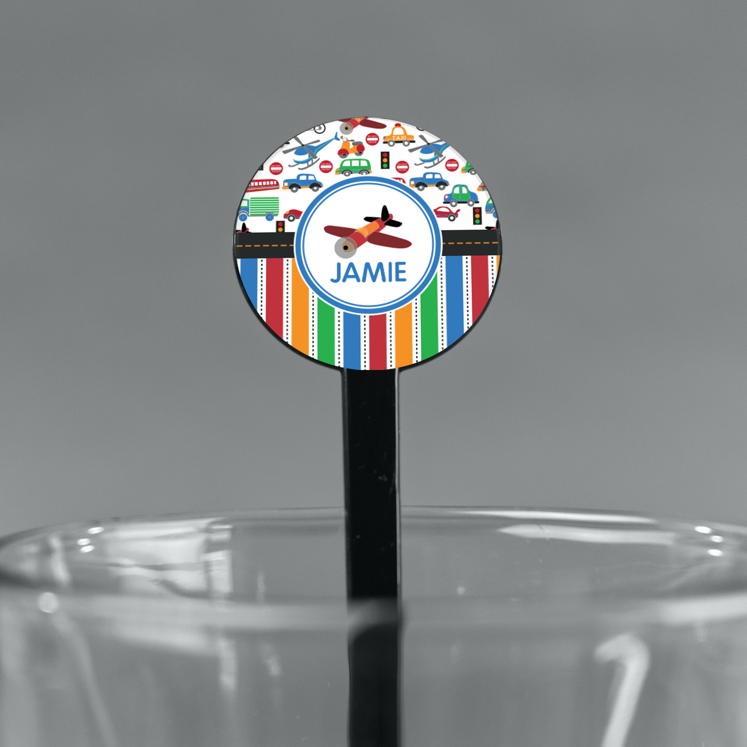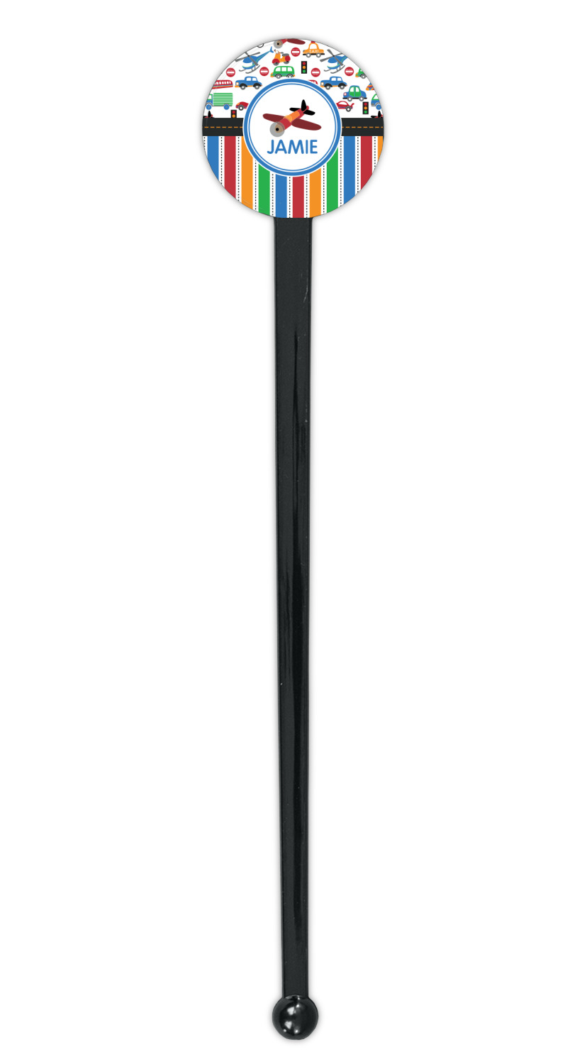 Planes Designs for 7" Round Plastic Stir Sticks - Black - Double-Sided