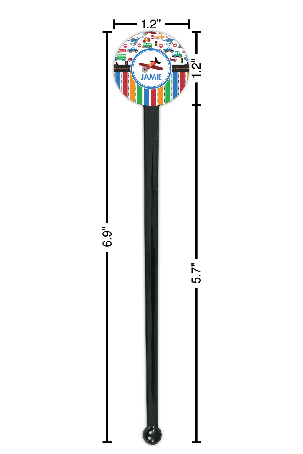Taxi Designs for 7" Round Plastic Stir Sticks - Black - Double-Sided