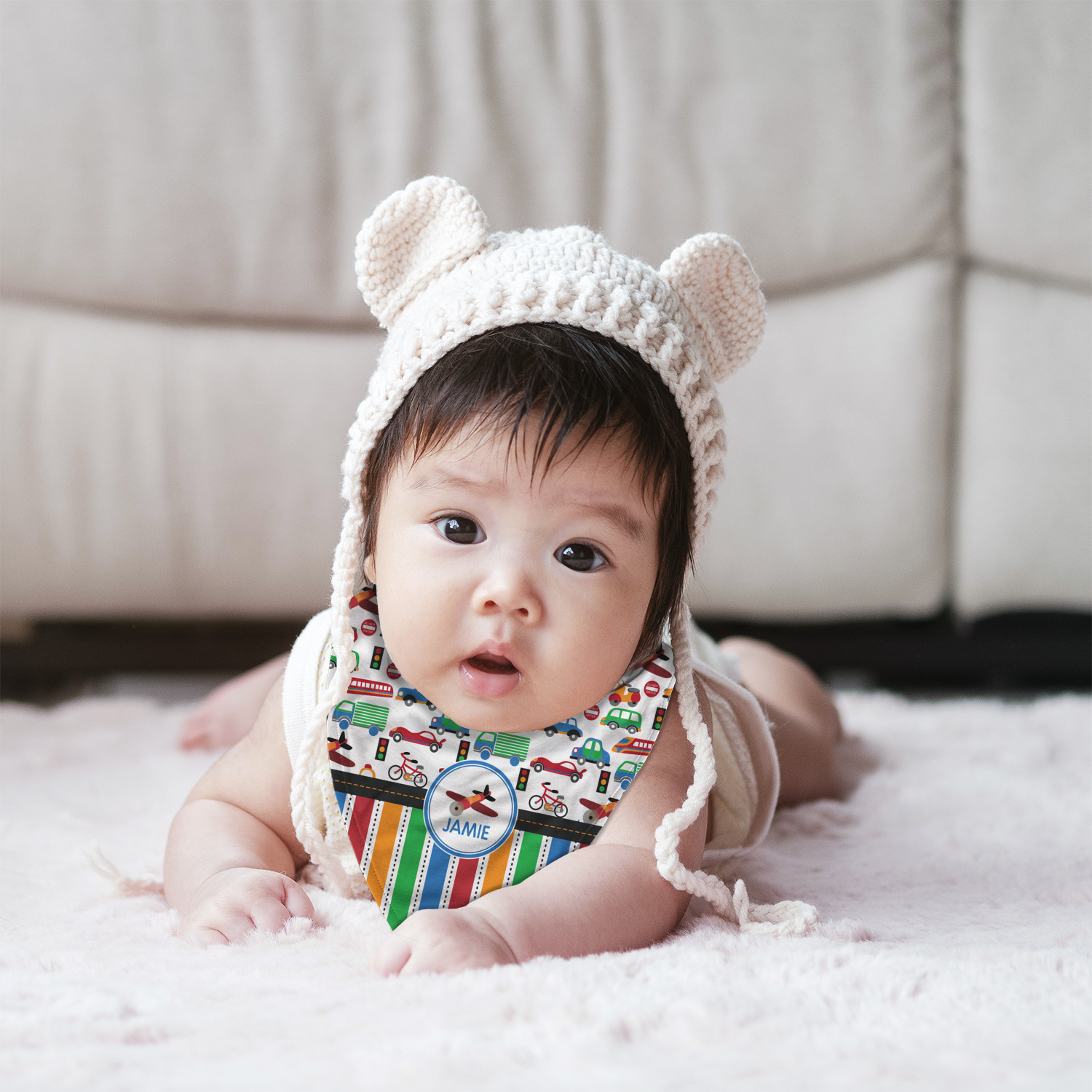 Combine this toddler bib with a variety of our other baby products, such as burp cloths, baby blankets, and baby onesies, to make a delightful baby shower gift! Or, browse from our selection of products in our Baby and Toddler section for more gifts for your own child! Customize some kid's cutlery, snack containers, or a sippy cup to make mealtime more enjoyable!