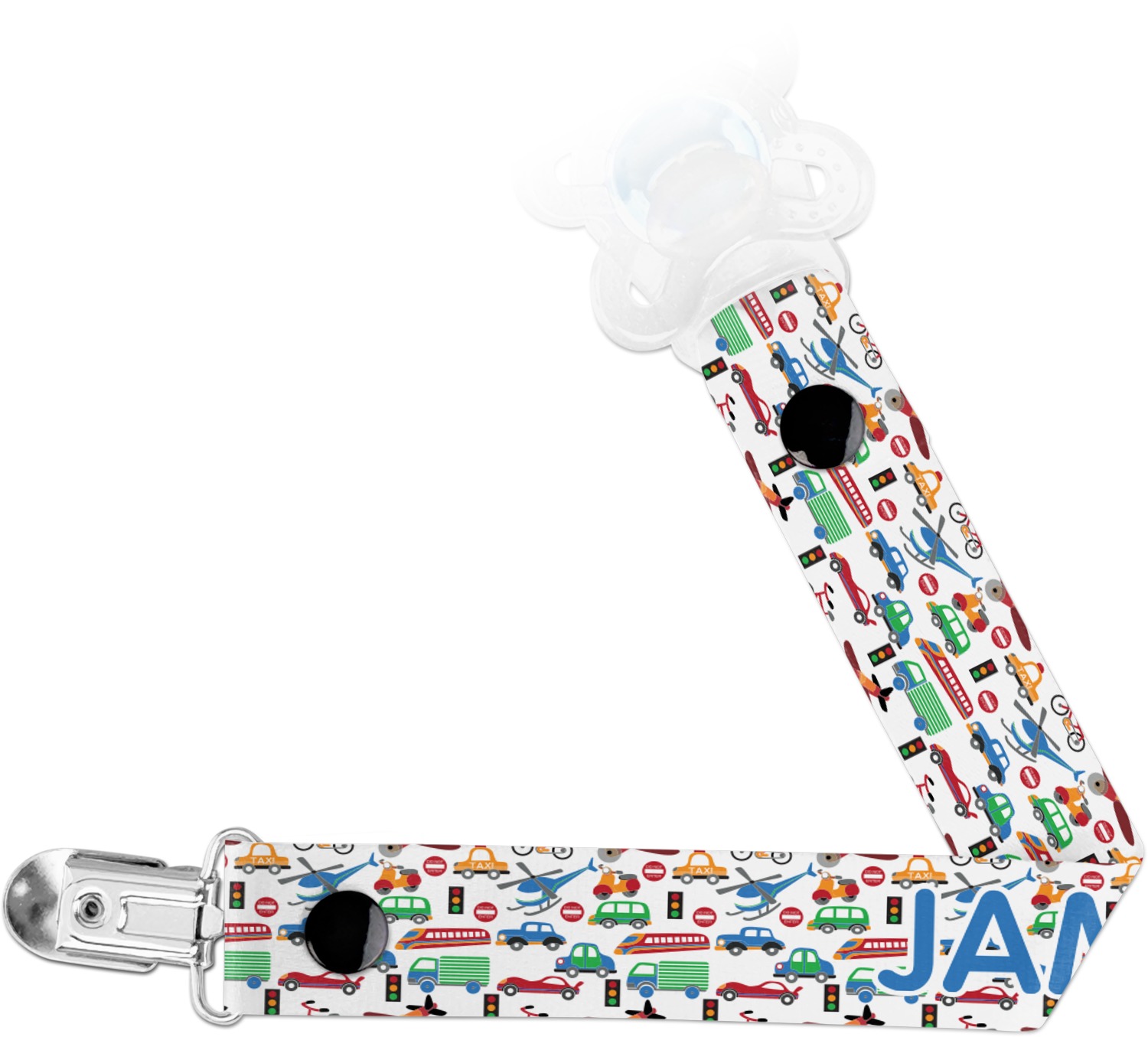 This personalized pacifier clip is the ideal size and measures at approximately 7.5 inches in length, when either end is snapped closed. On one end, you'll find a snap button. This button of your baby's pacifier holder is what can be attached to their pacifier to hold is securely in place. Simply open the snap, slip it through the pacifier opening, and snap it back into place. On the opposite end of this baby pacifier holder, you'll find a metal clip that can secure to a baby's collar or sleeve. This clip ensures that the strap stays in place, and that your baby's pacifier is always on hand.