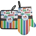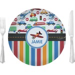 A gray with yellow "road" band ties the two patterns together. A blue and white circle label showcases the airplane and allows for personalization of your choice underneath. You can customize further by picking any of the transportation pictures in the pattern to place in the label. Just let us know what you want.