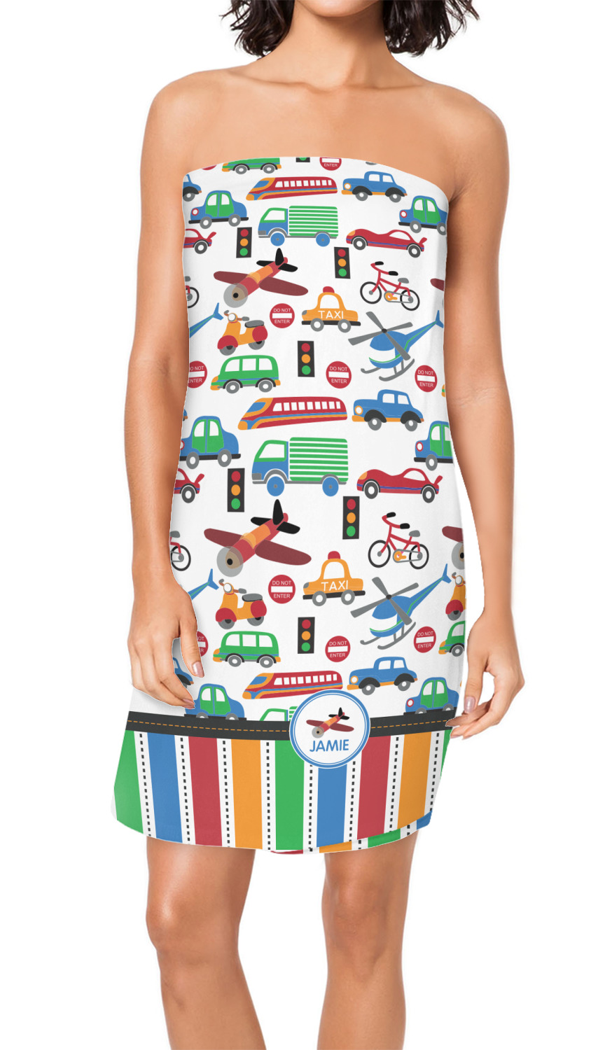 Made from a plush, fleece fabric, these luxurious towel wraps are comfortable and absorbent. They are printed, cut, and sewn for you, right here in the USA, after you place your order. These personalized bath wraps measure at approximately 59 by 32 inches, and display your customization across the outside.