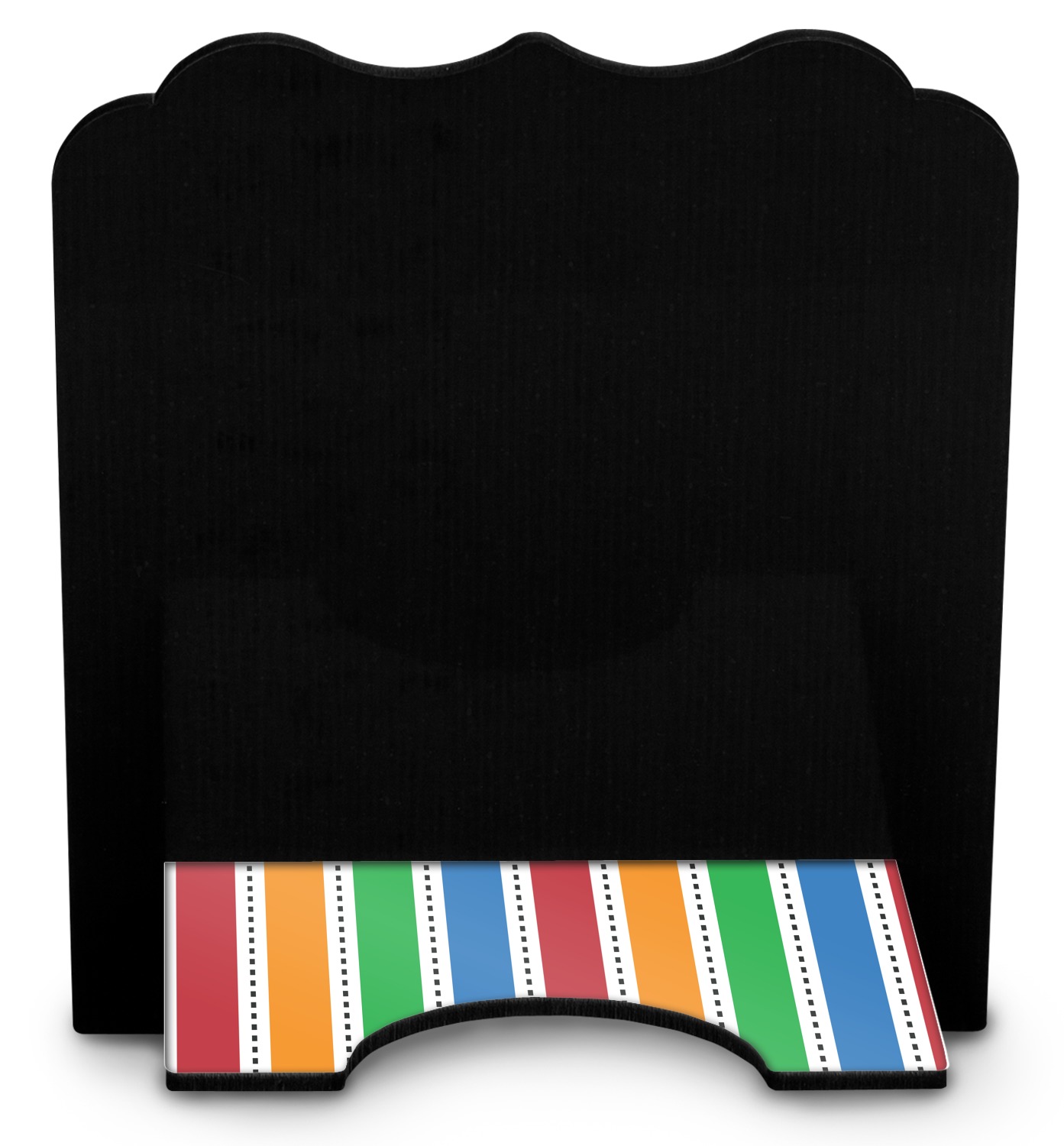 The stand is comprised of two hardboard pieces that fit snugly together and stabilize one another. The bottom part of the iPad stand supports your tablet, and has space for your tablets charger while in use. At 9.25" x 11.5", this tablet mount can support a device between the sizes of the iPad Pro and the iPad Mini 2. The uppermost part of the stand features a decorative, curved edge for a classy, suave appearance. We print your customization atop the face of the stand, in vibrant color. The remaining sides are colored a sleek black.