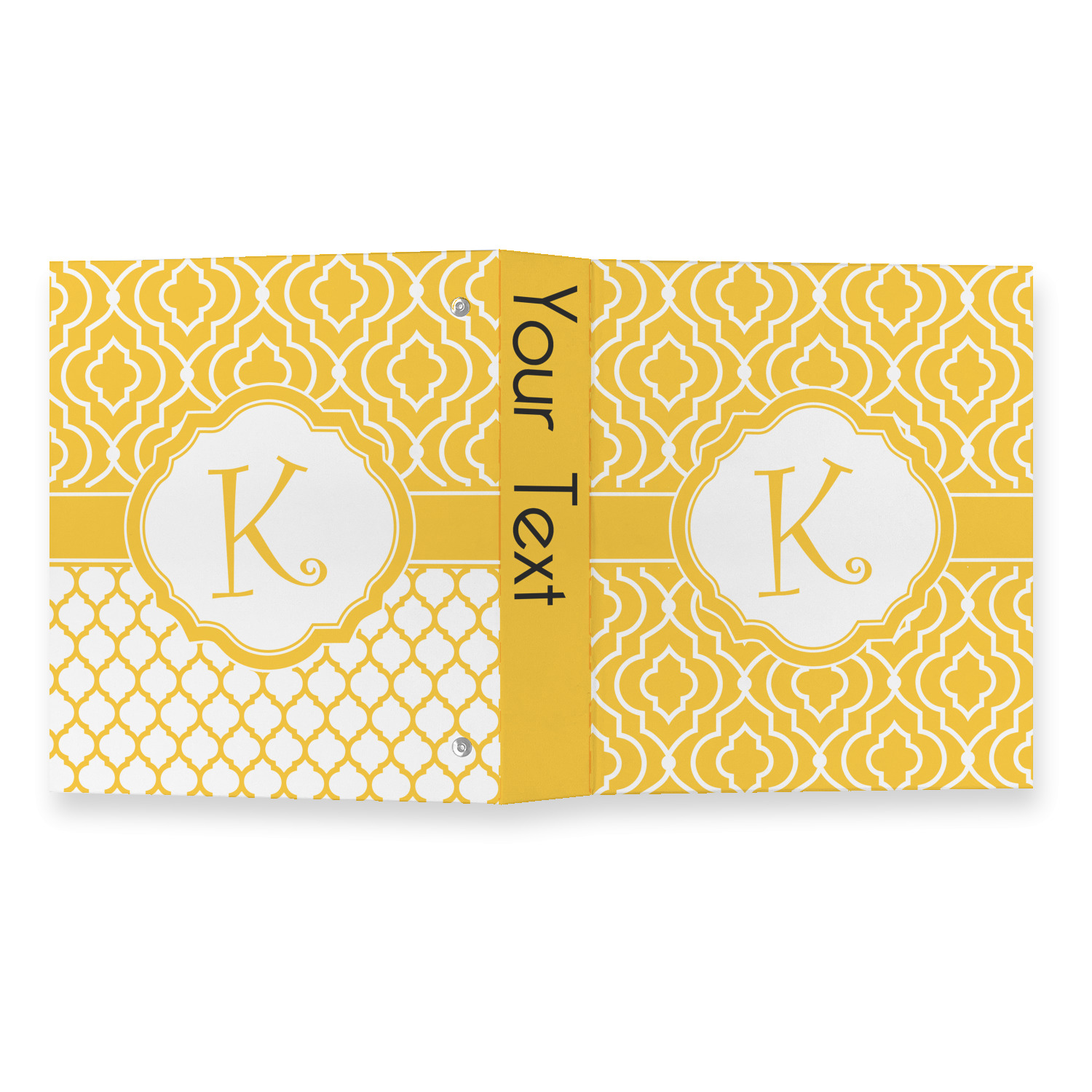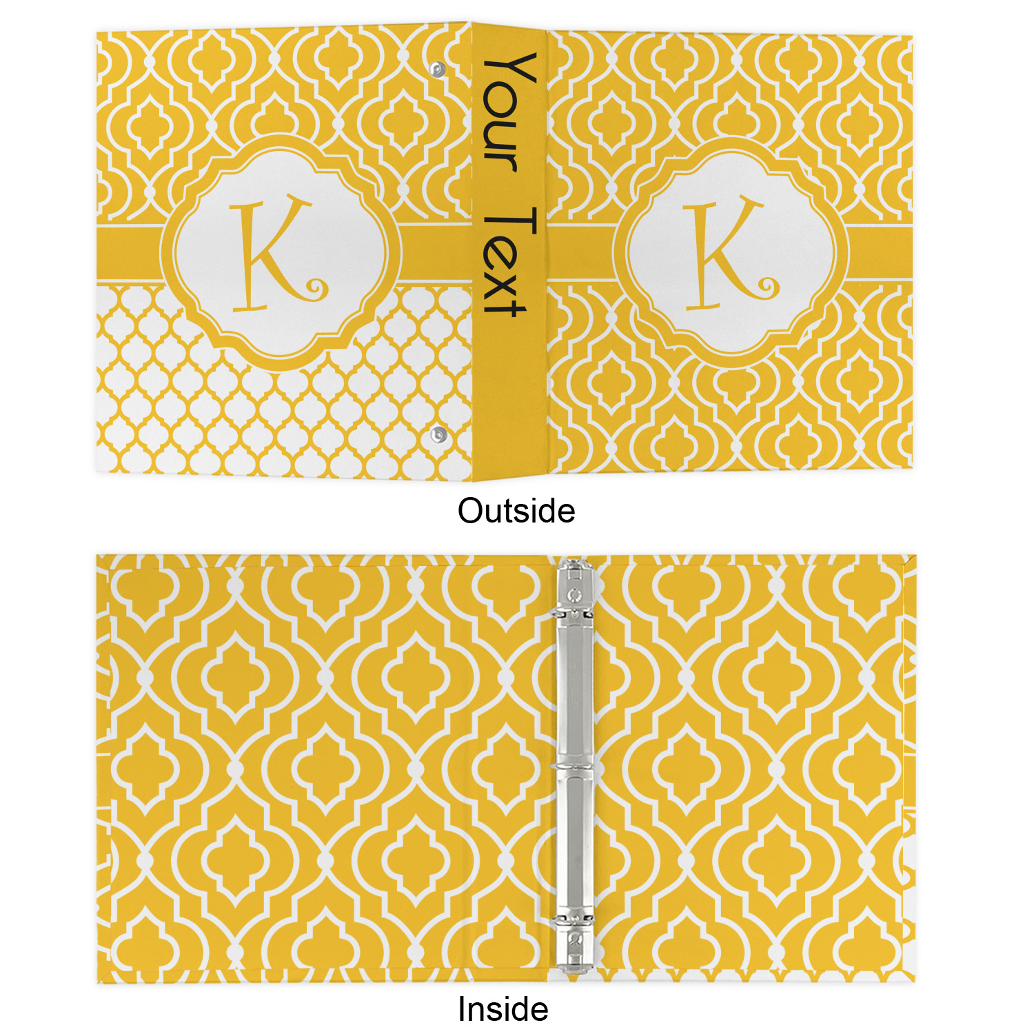 Made from a sturdy cardboard base with a full high quality canvas textured vinyl wrap with the design of your choice. Unlike our standard 3-ring binder with the full wrap design your artwork wraps from the front and back and into the inside of the binder.